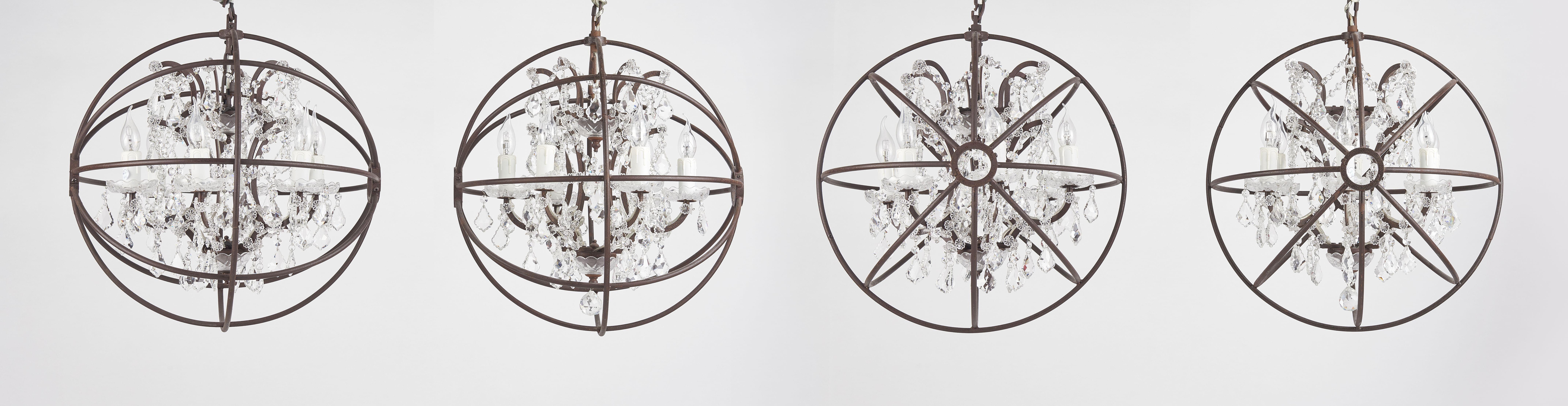 953. Suite de quatre lustres à pendeloques dans leur cage sphérique