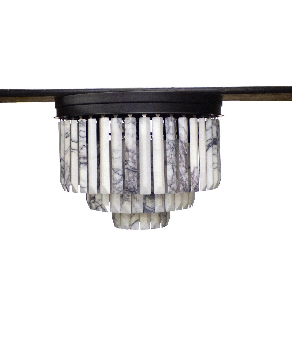 Métal noir et pampilles de marbre blanc veiné, 48x25 cm