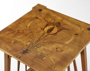 4554. Table d'époque Art nouveau à plateau à décor marqueté