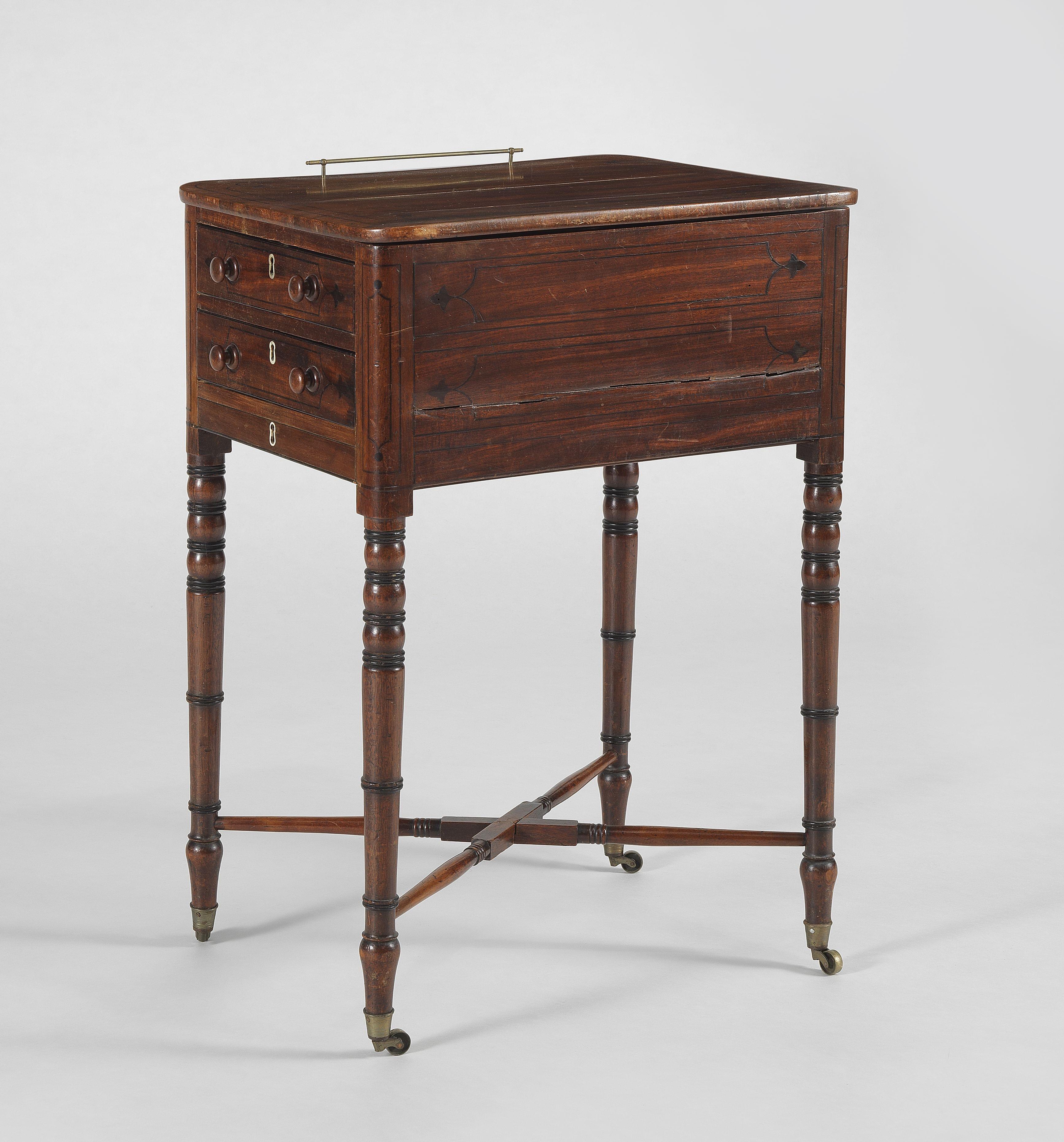 Trois tiroirs, entretoise en x, acajou et bois noirci, 70x50x38 cm