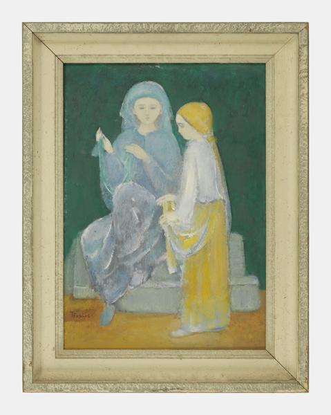 Jeunes femmes, huile sur panneau, signée, 60x41 cm