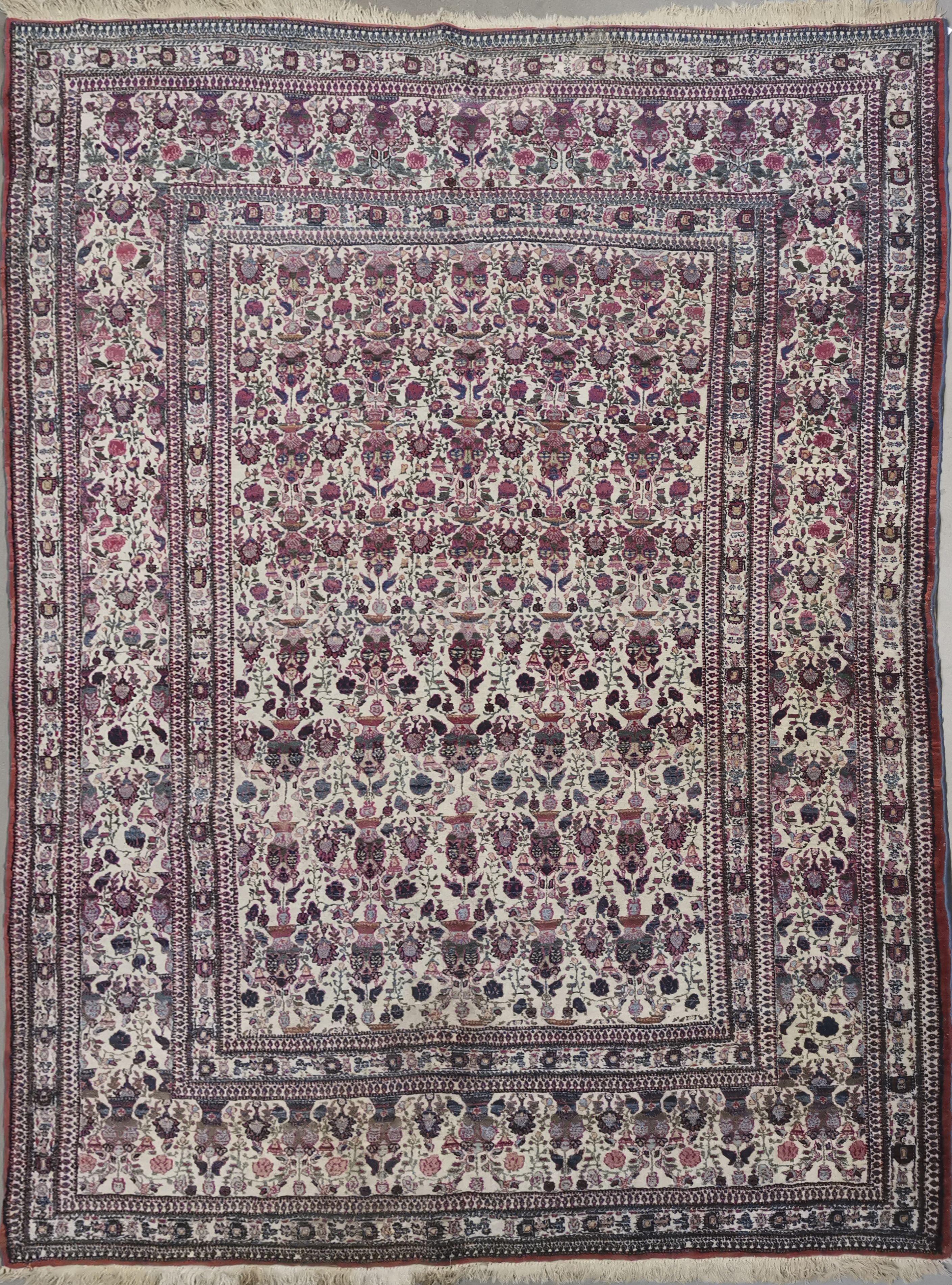 Laine à motif de bouquets de fleurs et oiseaux sur fond crème, 298x201 cm.