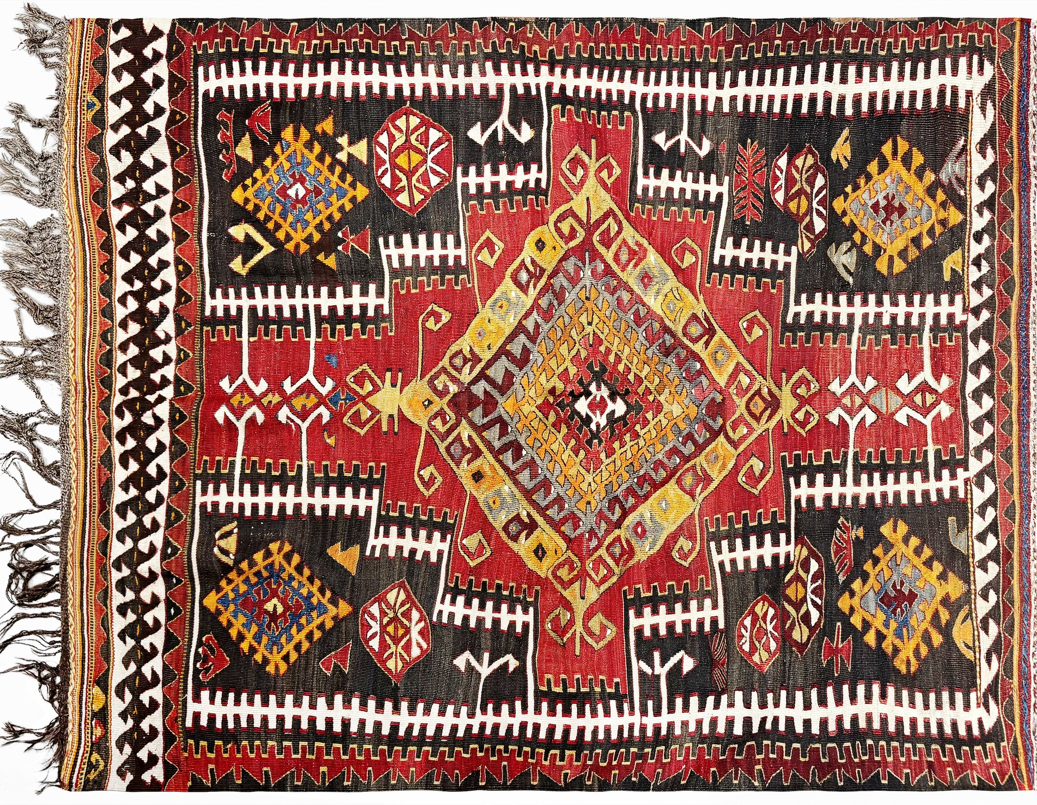 Médaillon central sur fond rouge à motifs géométriques sur fond...