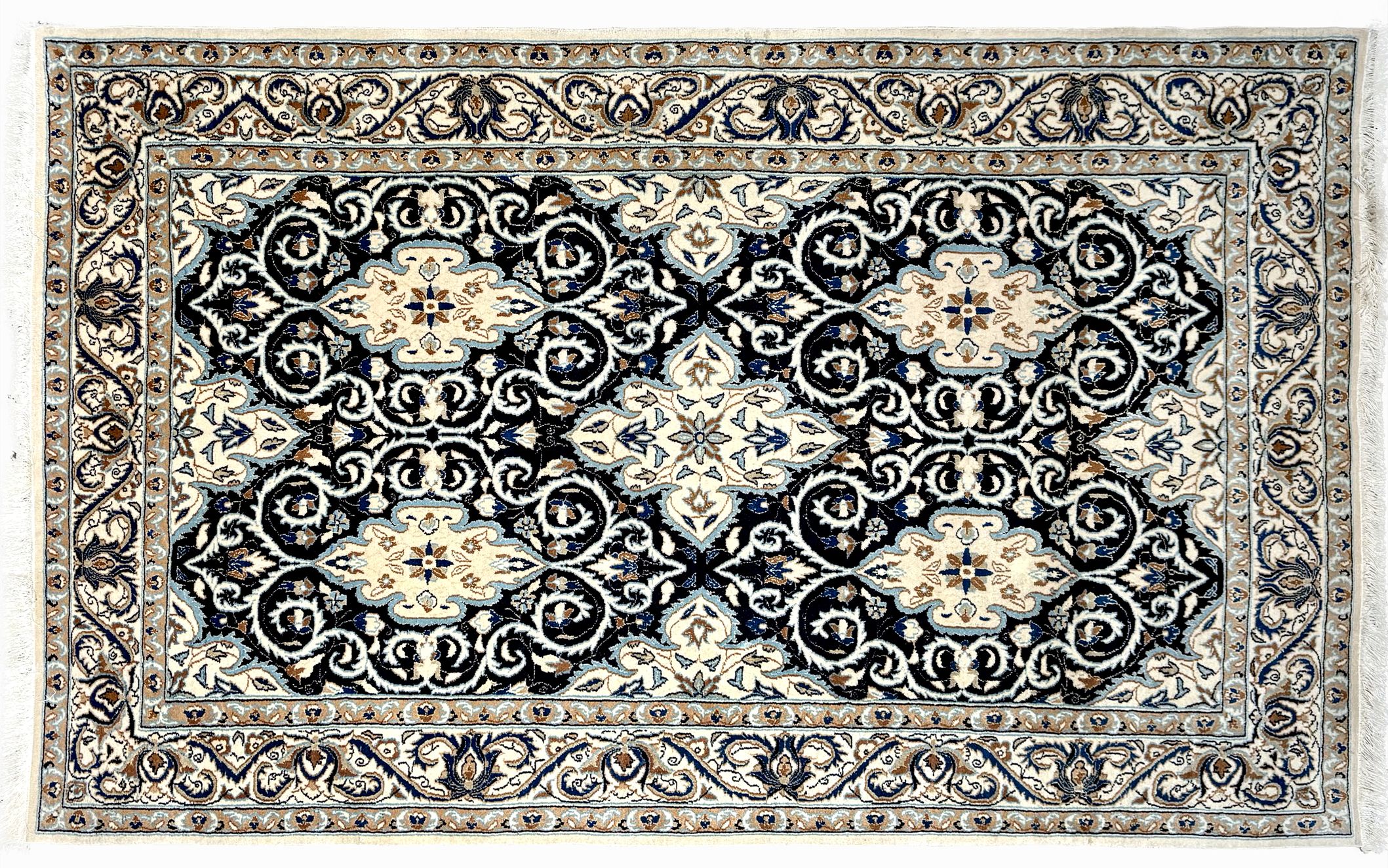 Champ central orné de cinq médaillons sur fond bleu foncé, bordu...