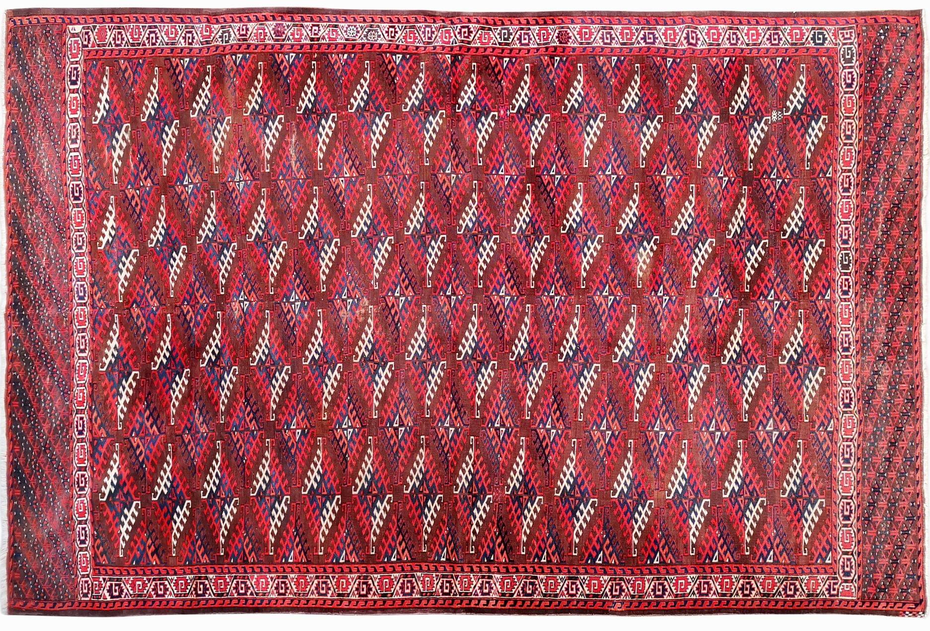 Laine à motif de semi de motifs stylisés sur fond rouge, 350x200 cm
