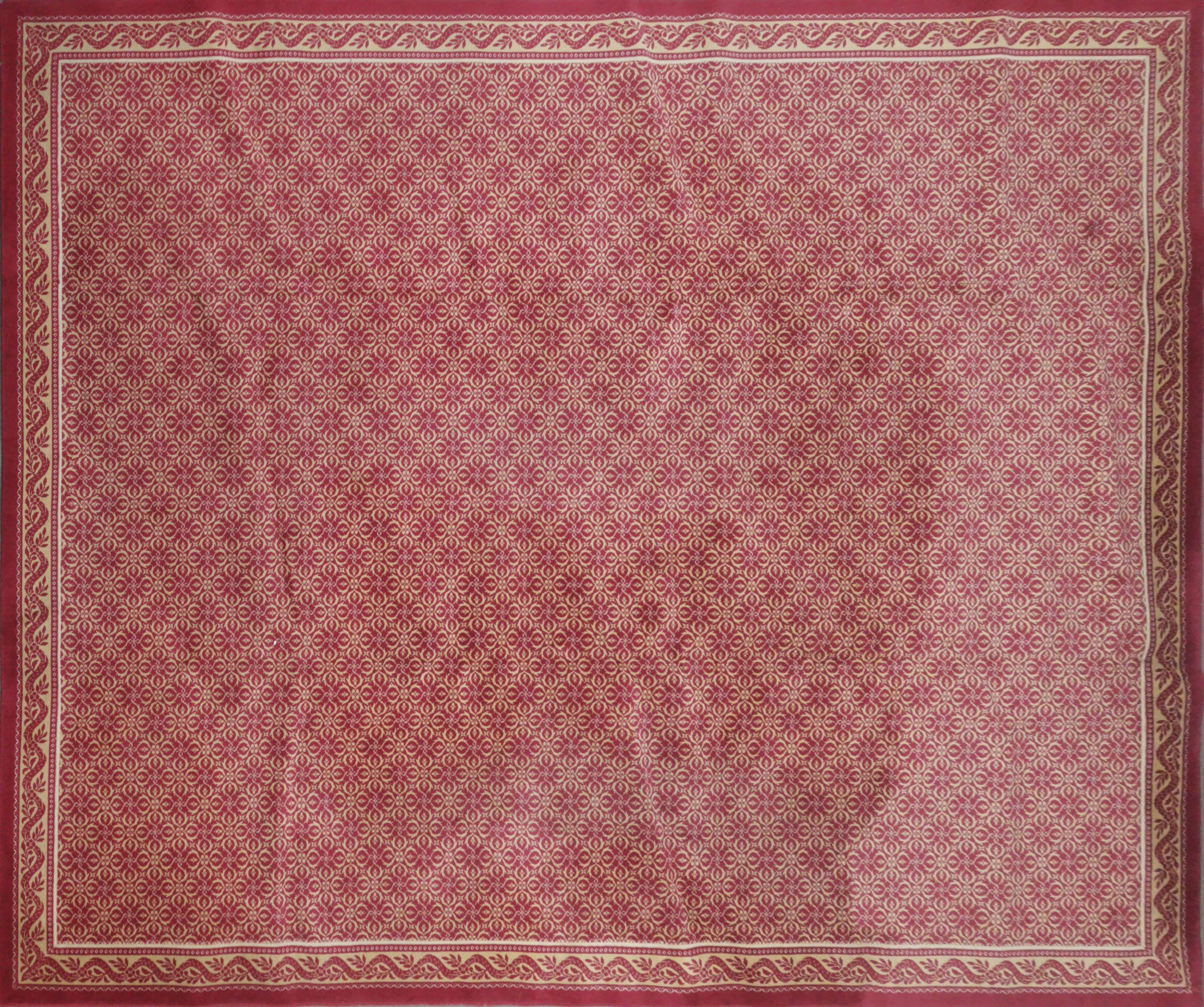 A motifs de semis de médaillons sur fond rouge, 420x327 cm