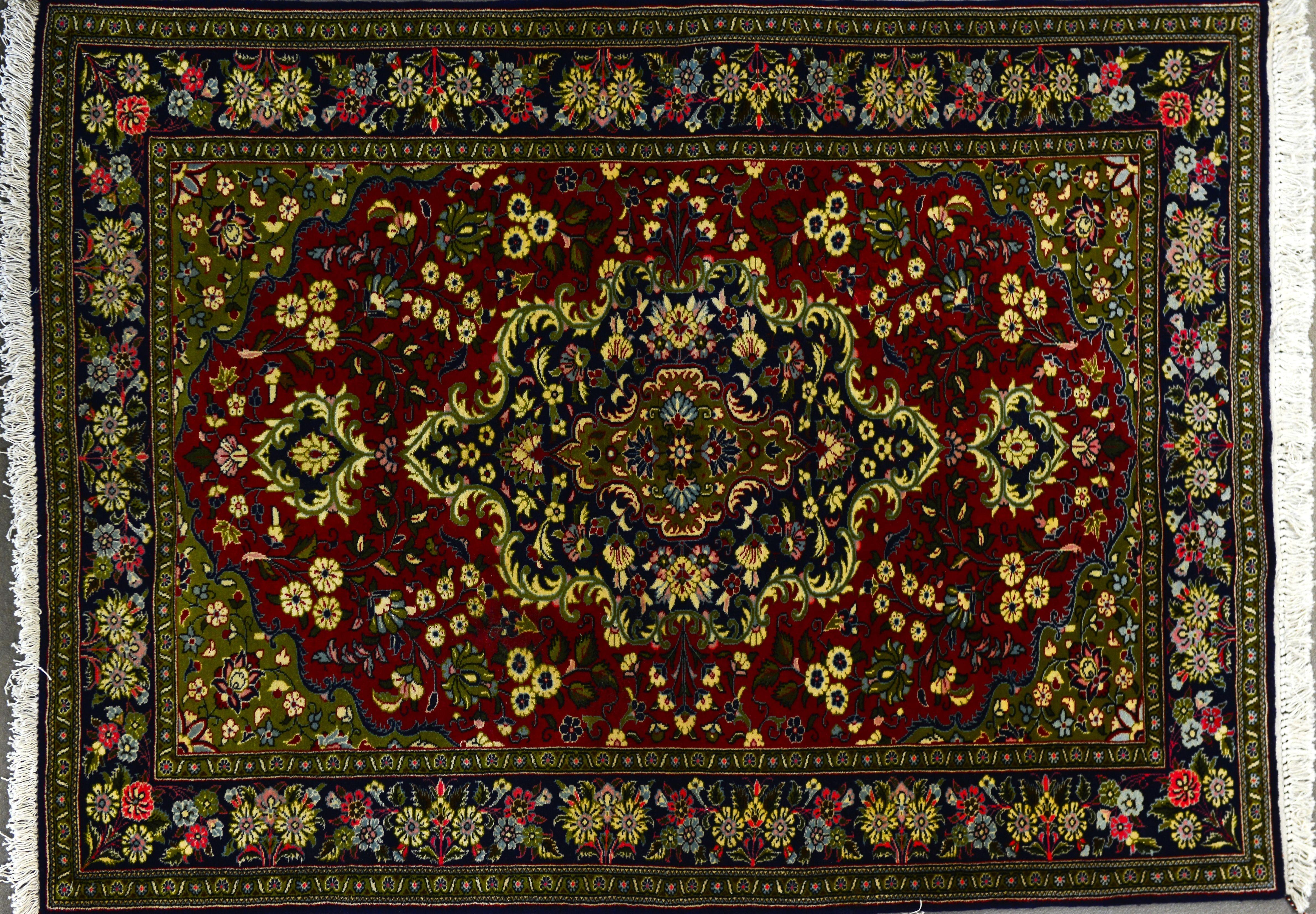 Laine à motif central sur fond rouge et vert, 110x154 cm