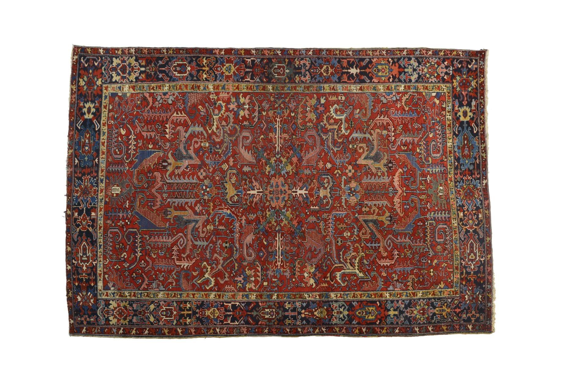 milieu XXe s, médaillon central sur fond rouge brique entouré au...
