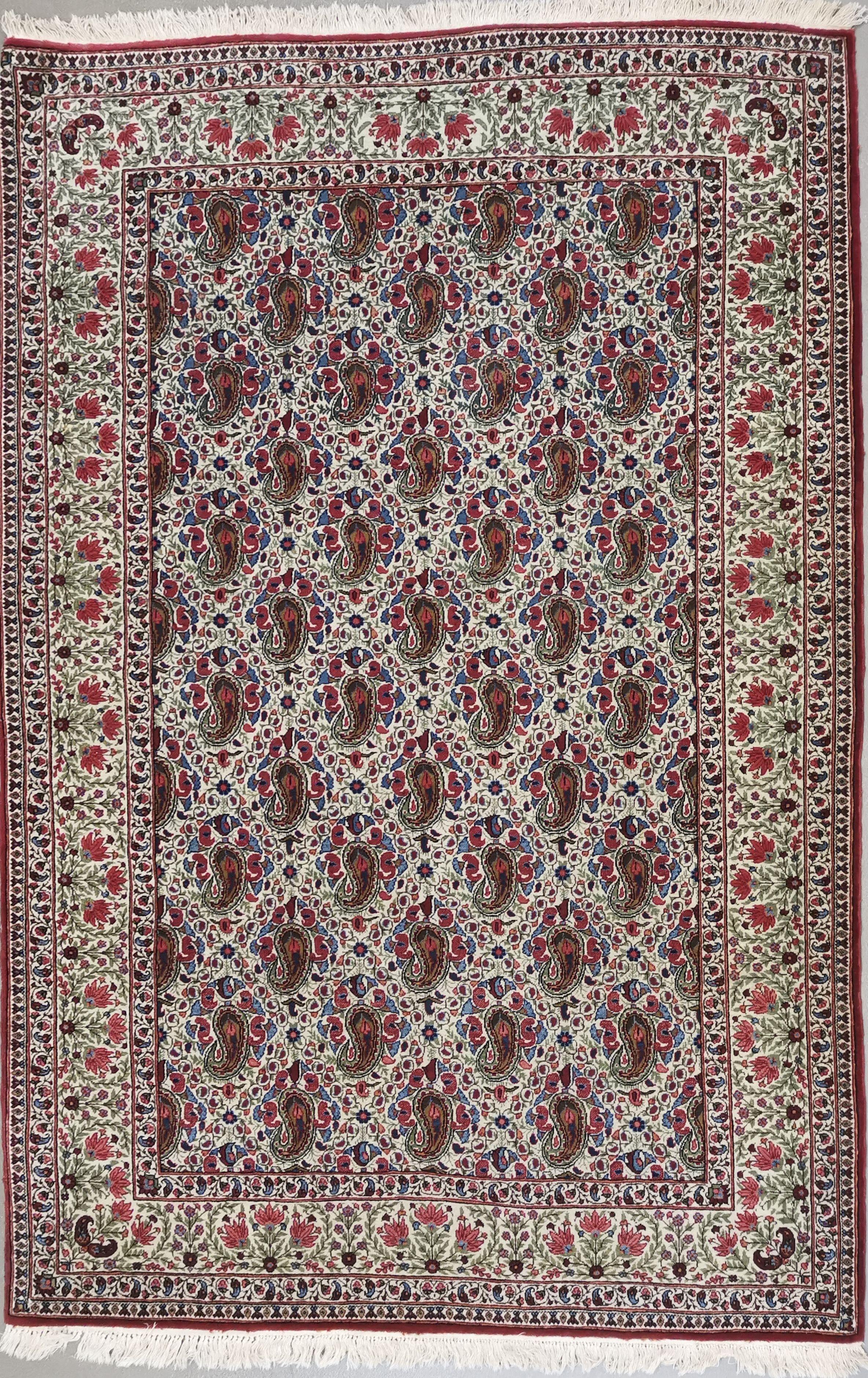 Laine à motif de semis de boteh sur fond beige, 209x144 cm.