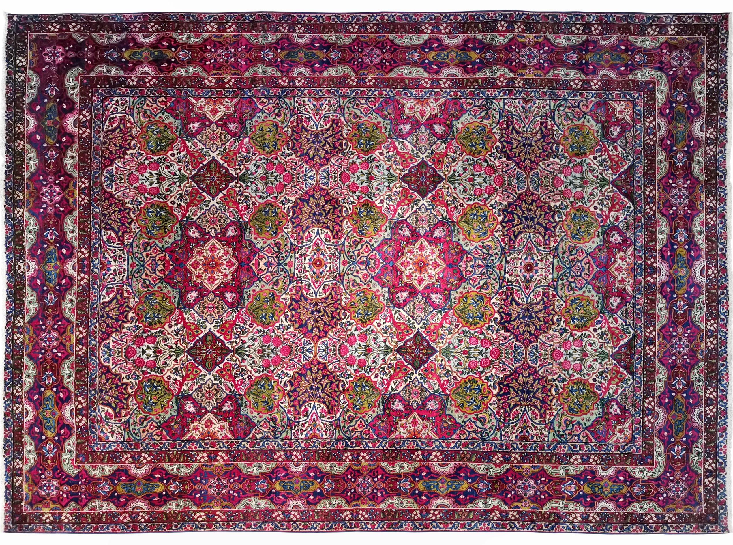 Laine à motif de vases sur fond bleu à bordure crème, 310x400 cm