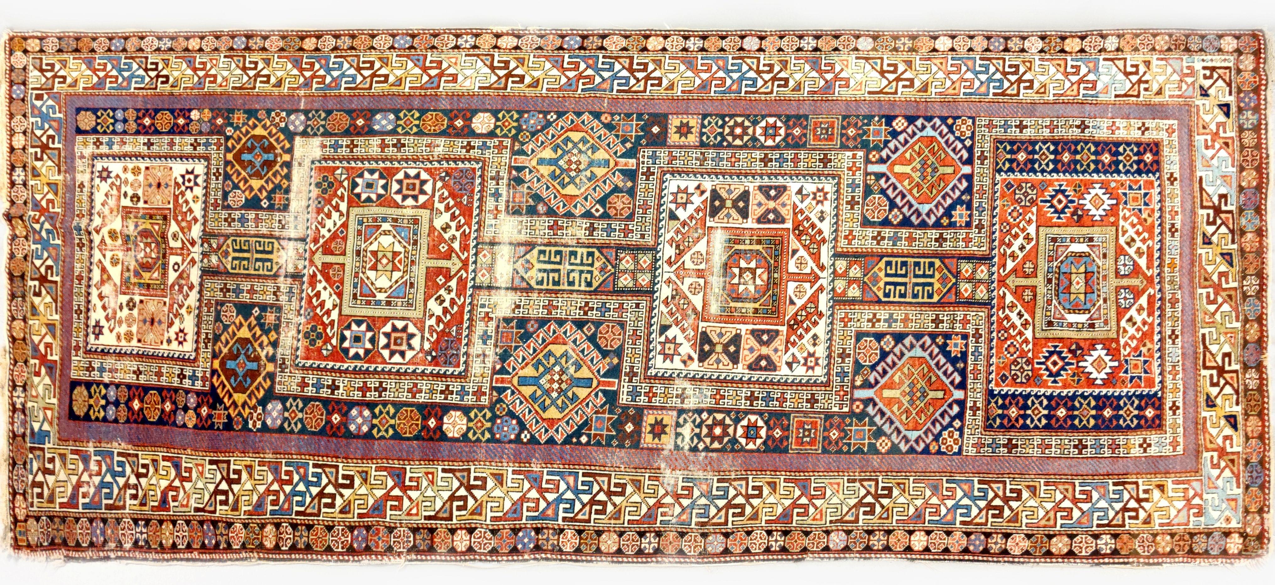 Laine et soie à motifs géométriques sur fond orange,, 59x107 cm