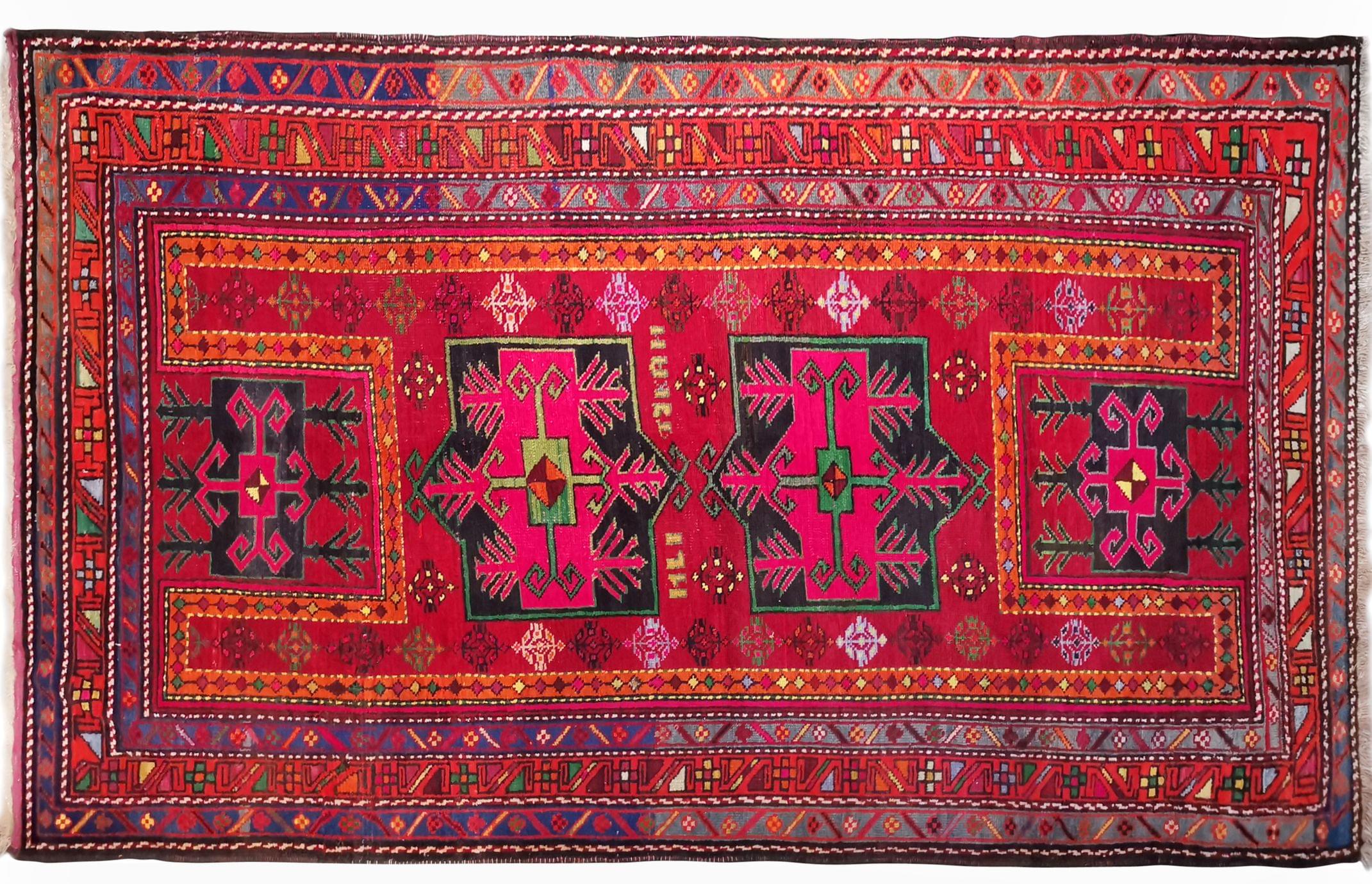 Laine à décor géométrique sur fond rouge, 261x128 cm