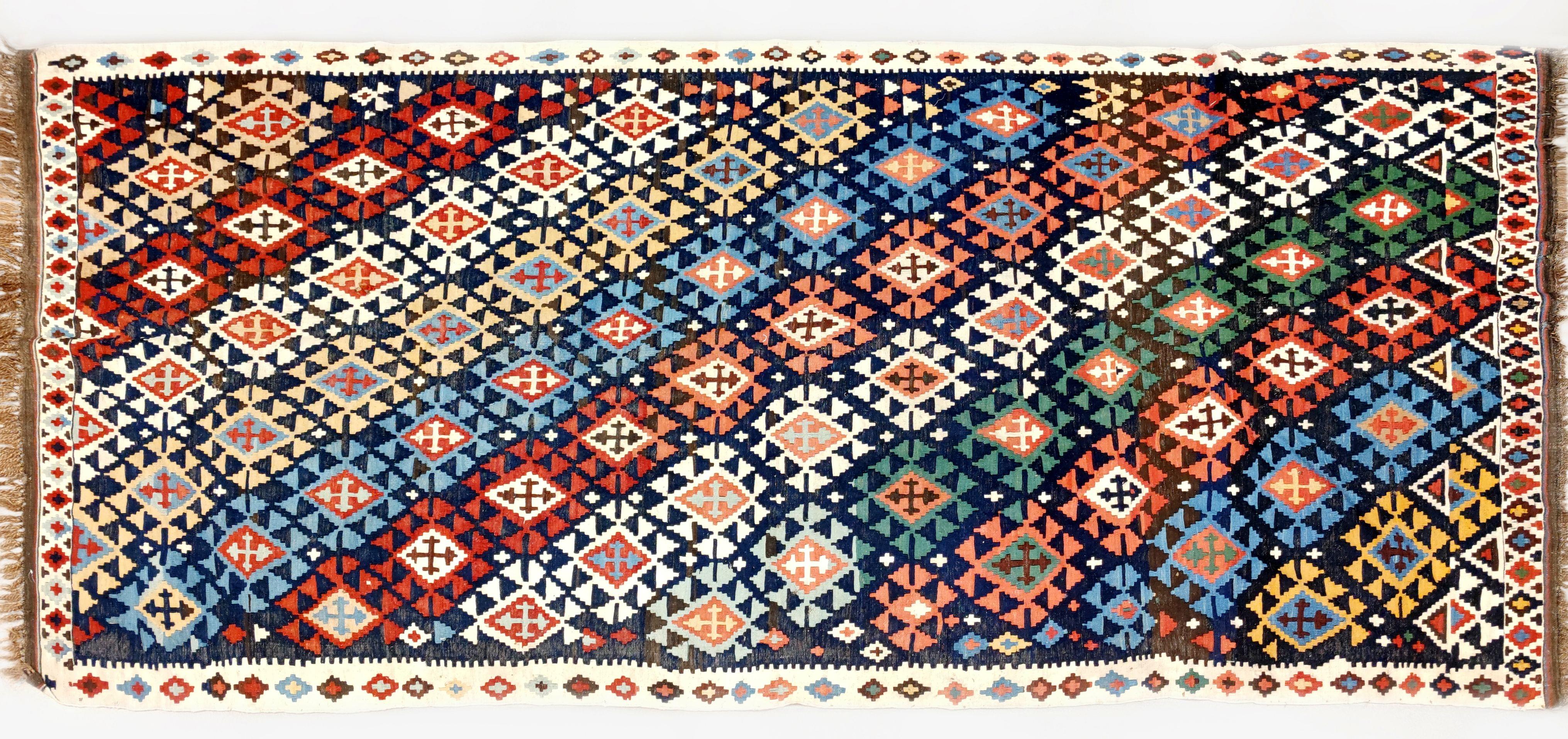 Laine et soie à motifs géométriques sur fond orange,, 59x107 cm
