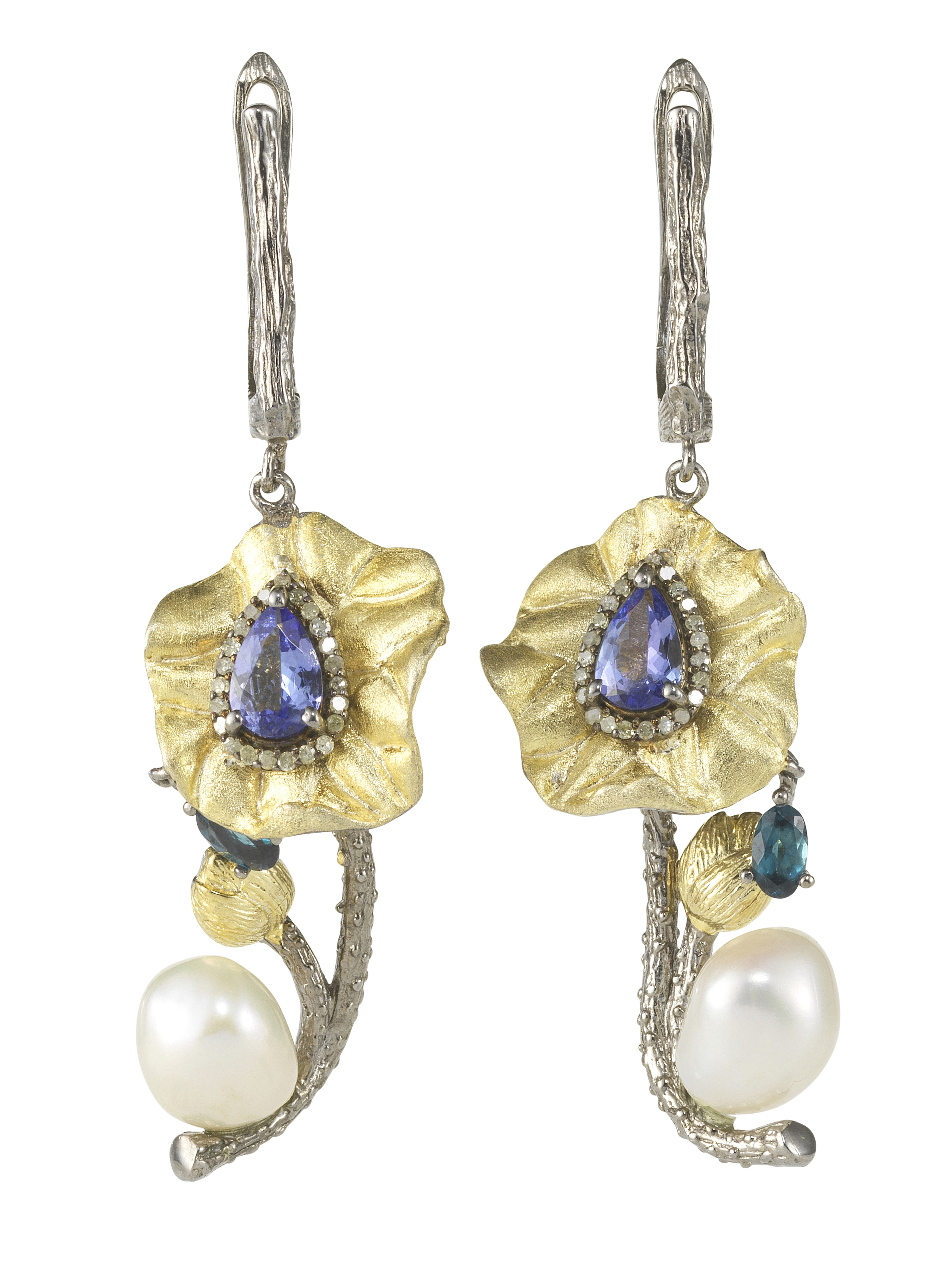 Serti d'une topaze rose taille brillant, de deux topazes taille...