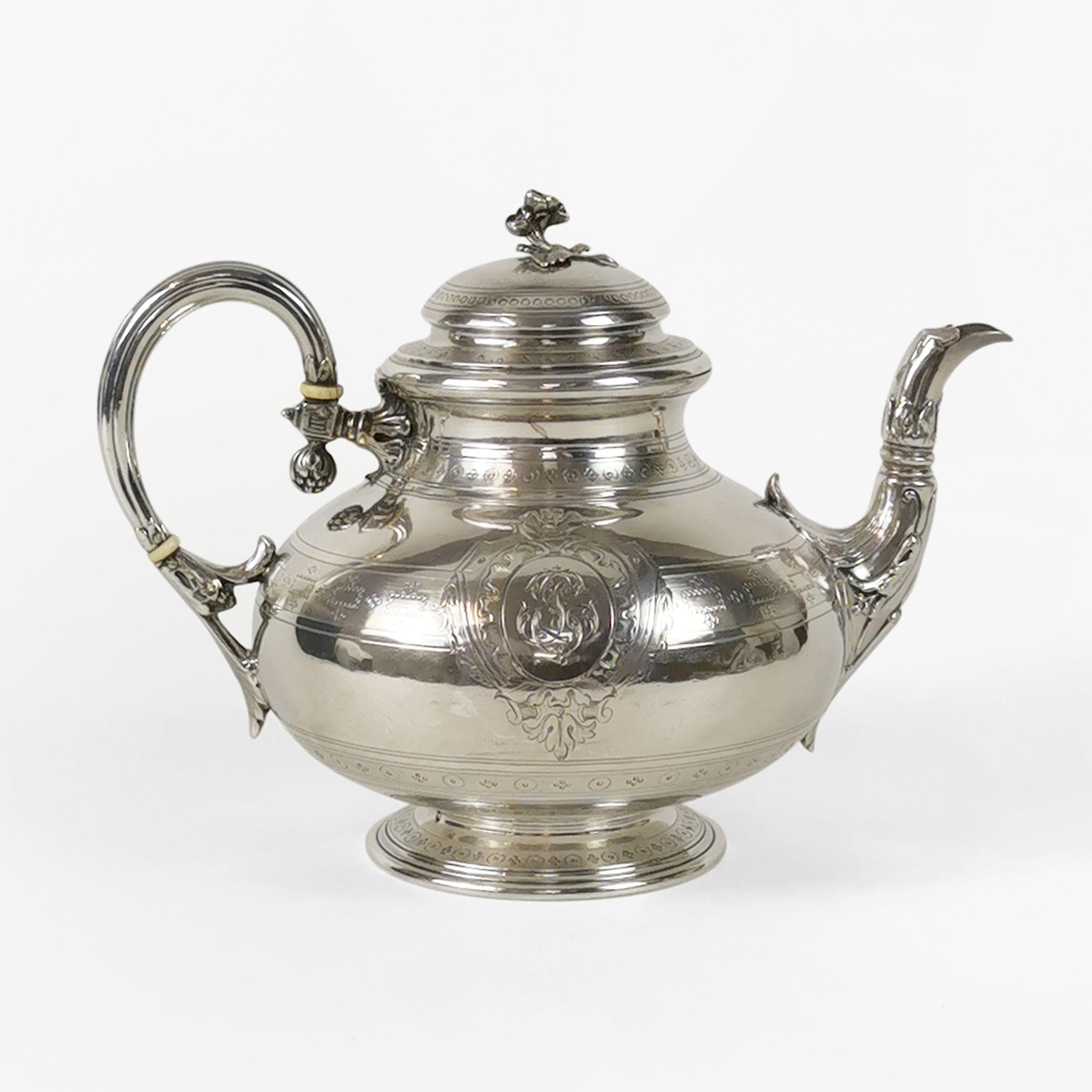 3716. Théière à larges godrons et prise fleurs d'époque Victorienne