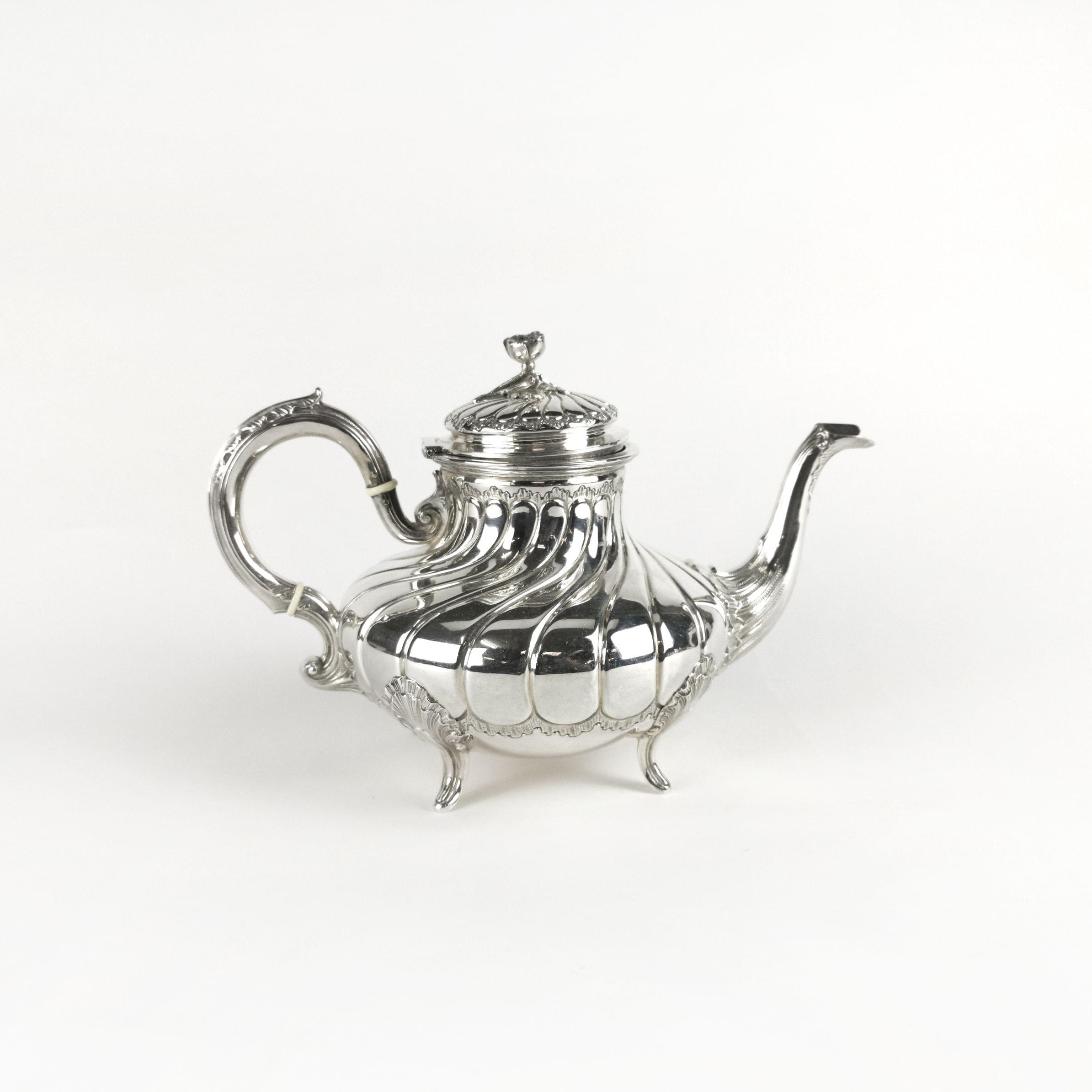 1020. Théière sur présentoir à frise de godrons et bec verseur tête de...