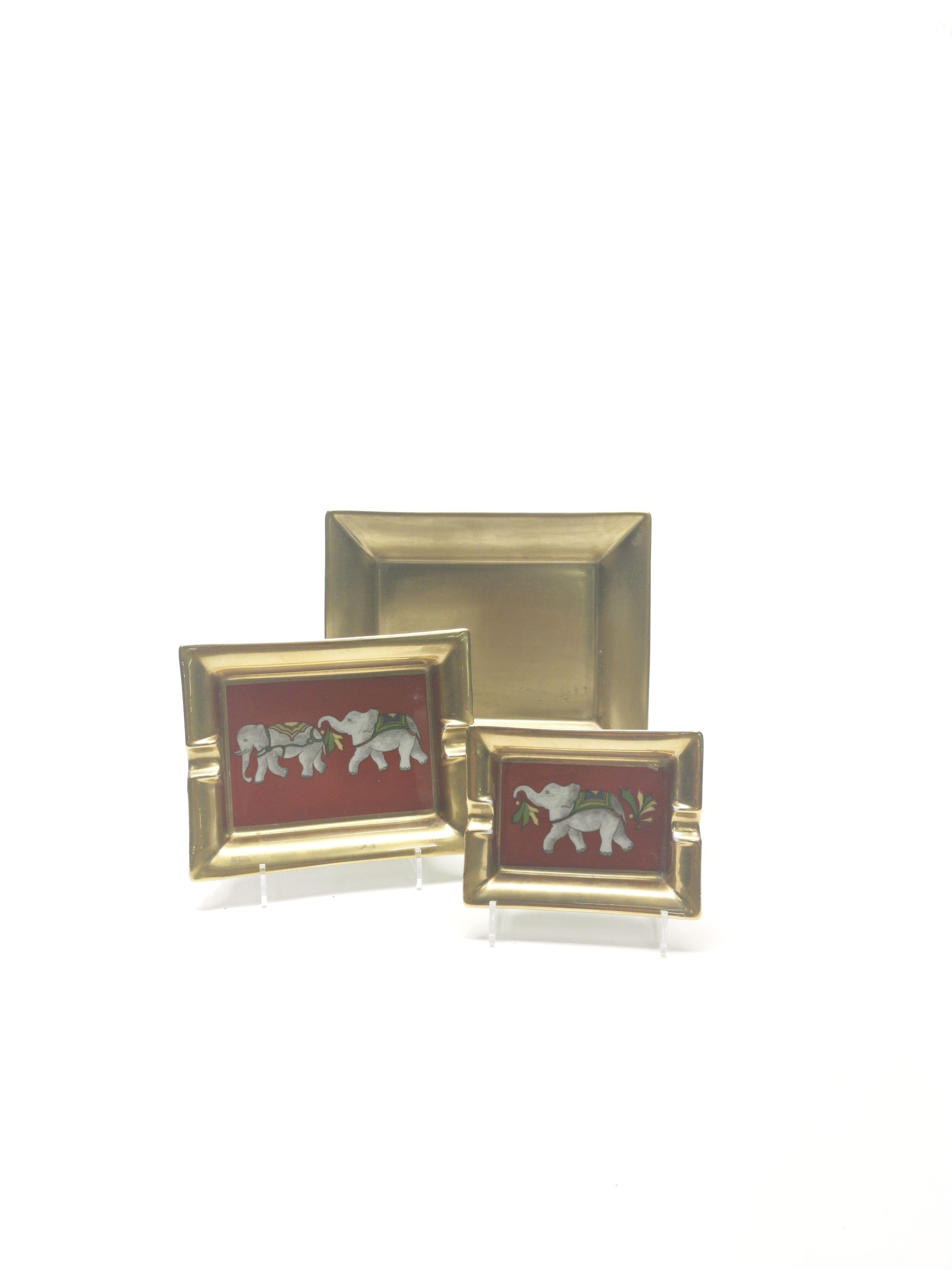 Porcelaine émaillée à décor d'éléphants et bordure dorée, dim. de 8,5x11 à 15,5x19 cm