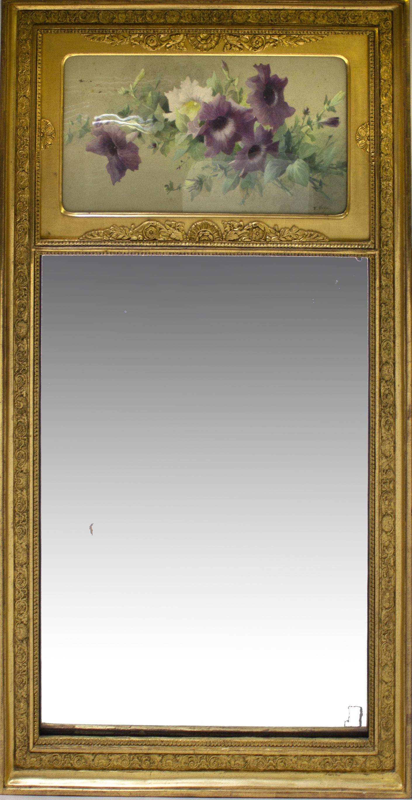 Bois stuqué et doré orné d'une peinture figurant des fleurs, 124x70 cm