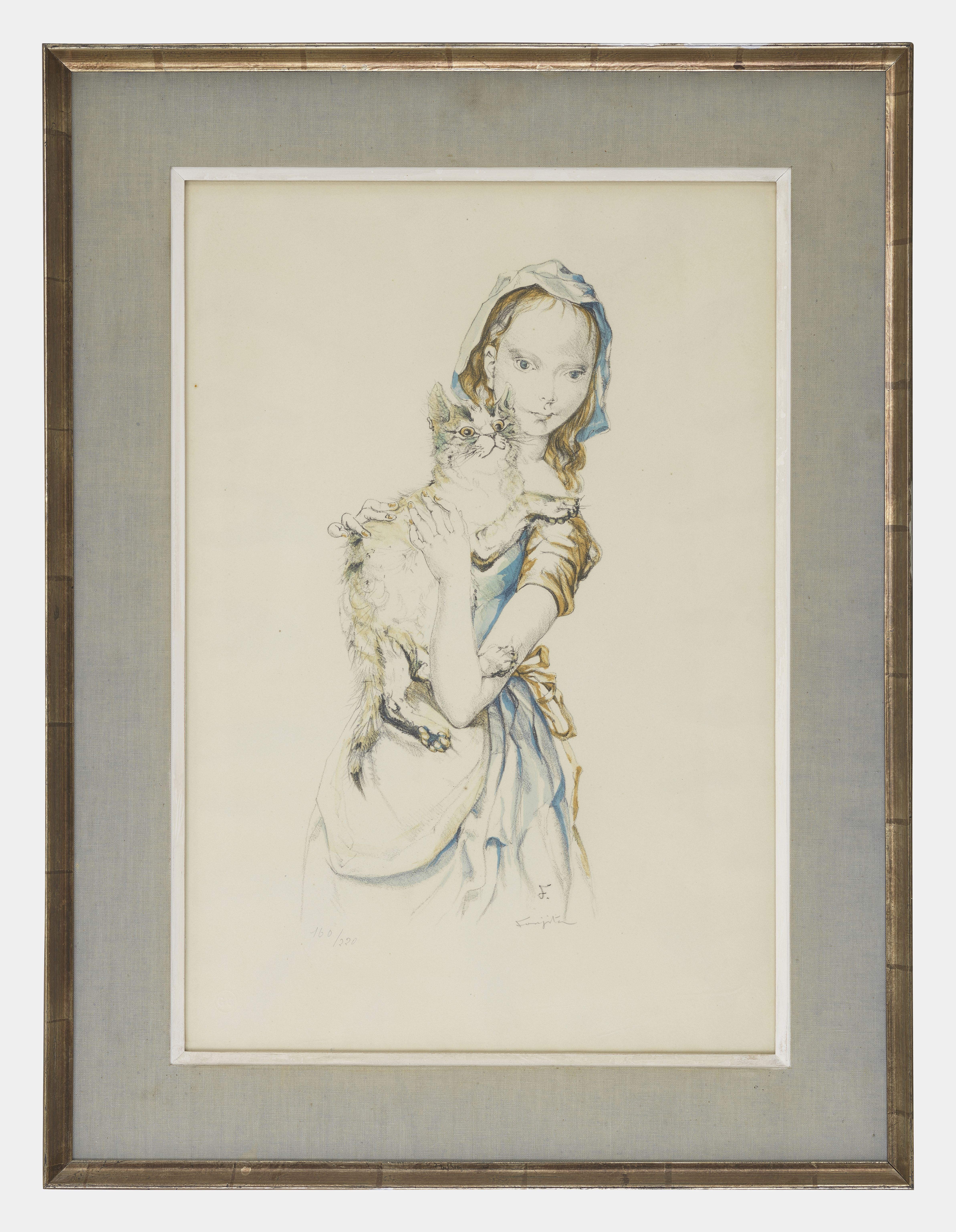 Jeune Fille au chat, lithographie, signée et numérotée 160/220, 56x38 cm. Provenance Galerie Badan