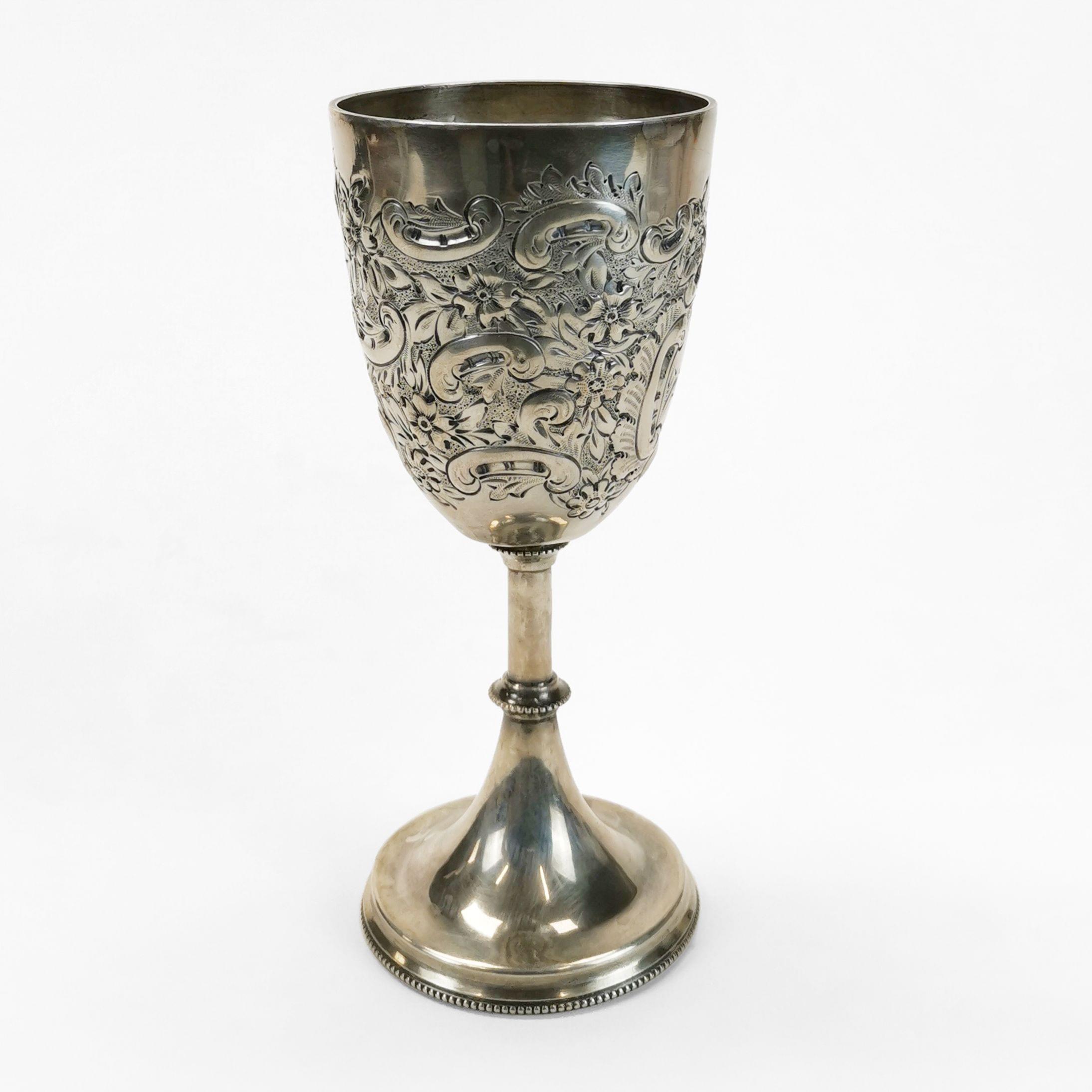 105. Bol à punch sur talon à décor repoussé de rinceaux et oiseaux