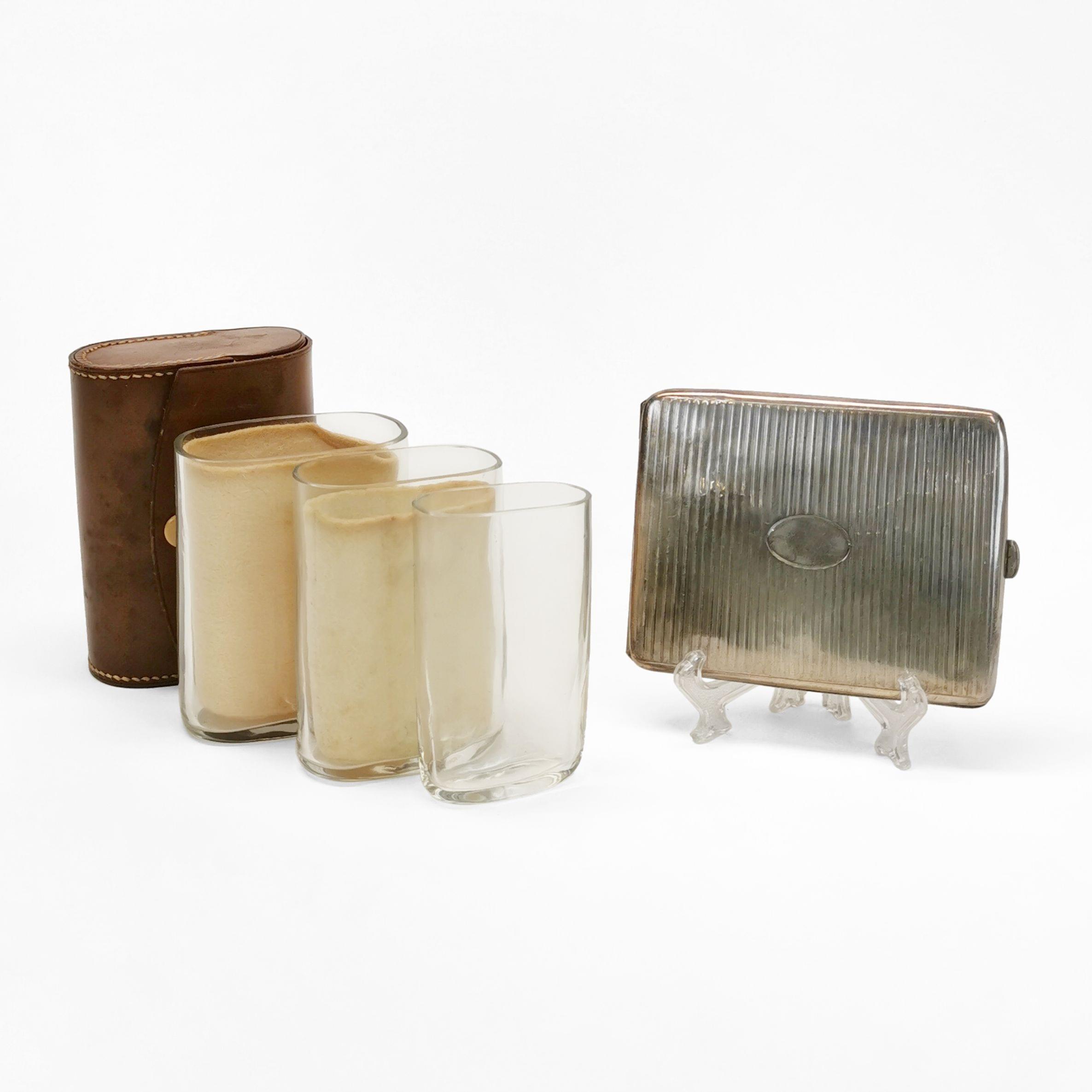 4339. Un étui contenant trois verres gigognes et 1 étui à cigarettes