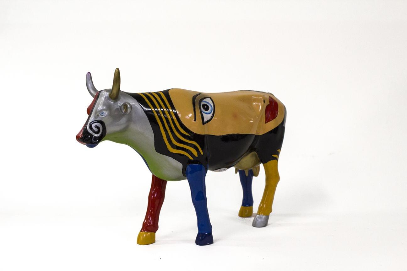 Résine à décor de visages sur fond bleu et noir, L 32 cm