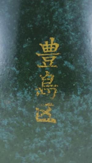 Céramique émaillée bleue sur fond craquelé à décor de fleurs, ma...
