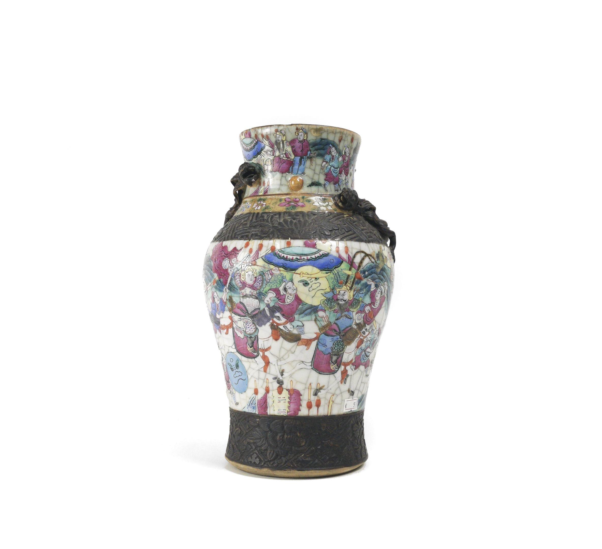 Porcelaine émaillée polychrome à décor de scènes de bataille, H 31 cm