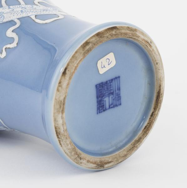 Porcelaine émaillée monochrome bleu ciel avec un décor à l'émail blanc, H 28 cm