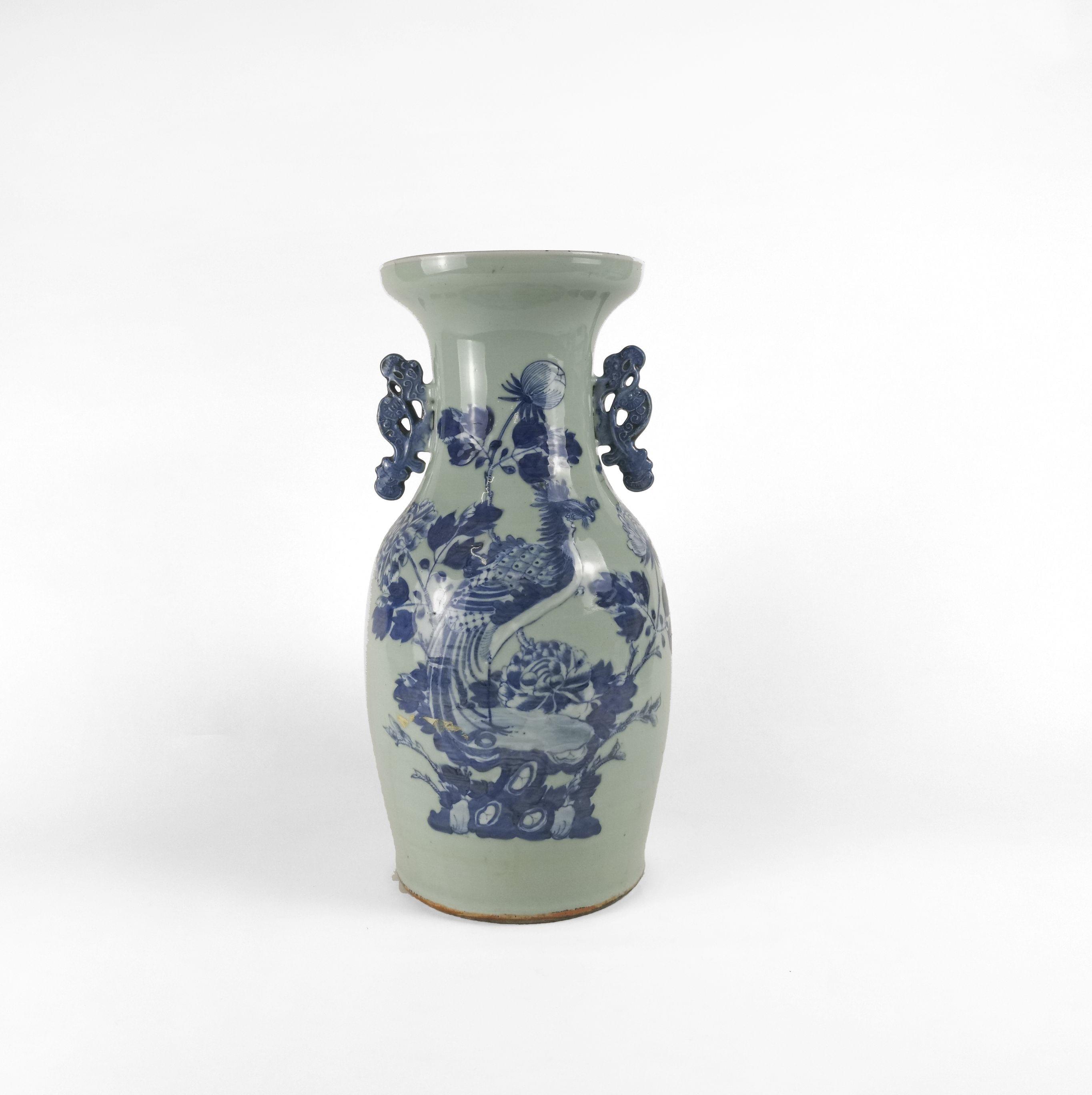 Porcelaine bleu blanc à décor de phénix, H 42 cm
