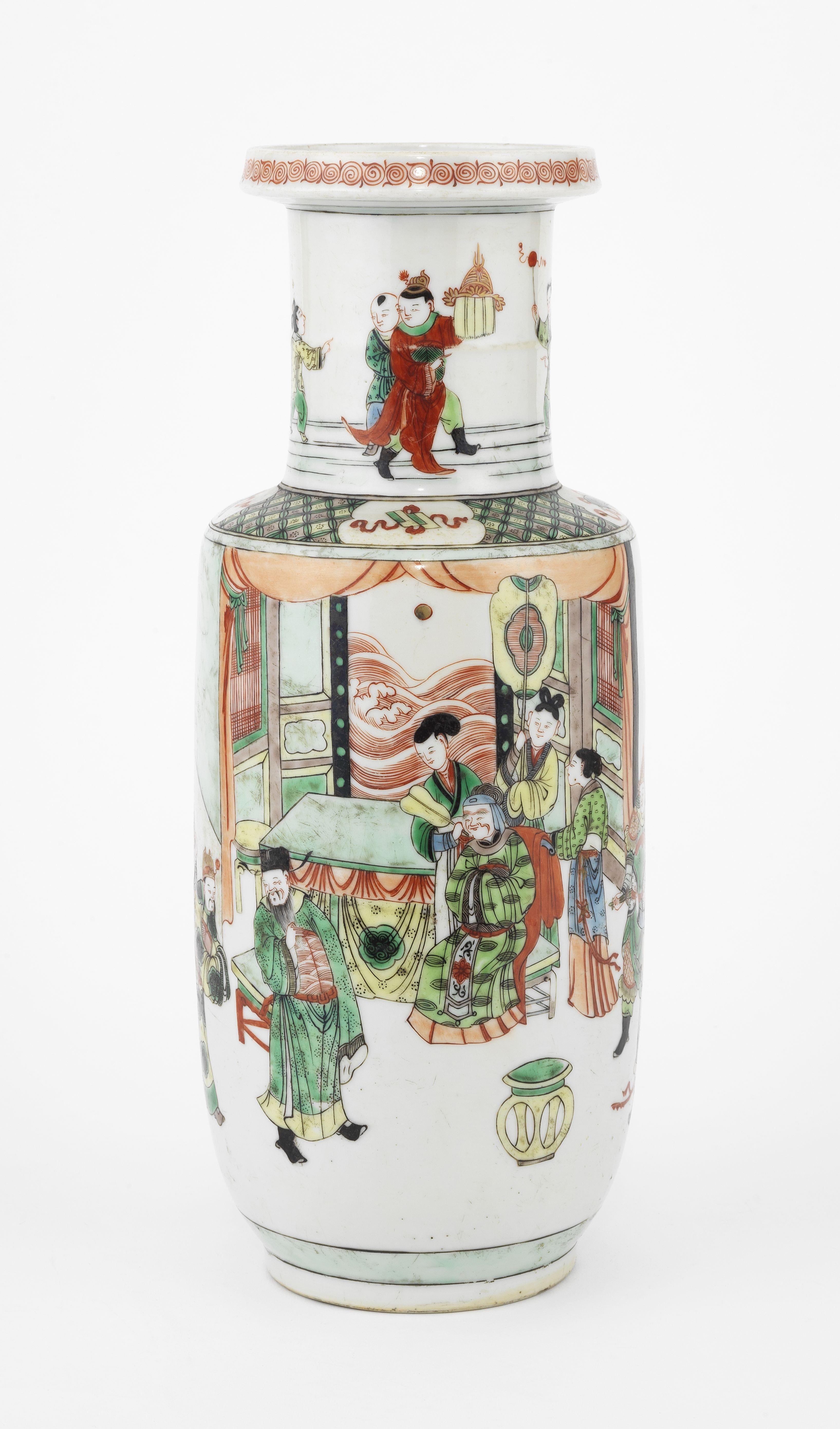 Porcelaine émaillée polychrome à décor de scènes de cour, H 35 cm
