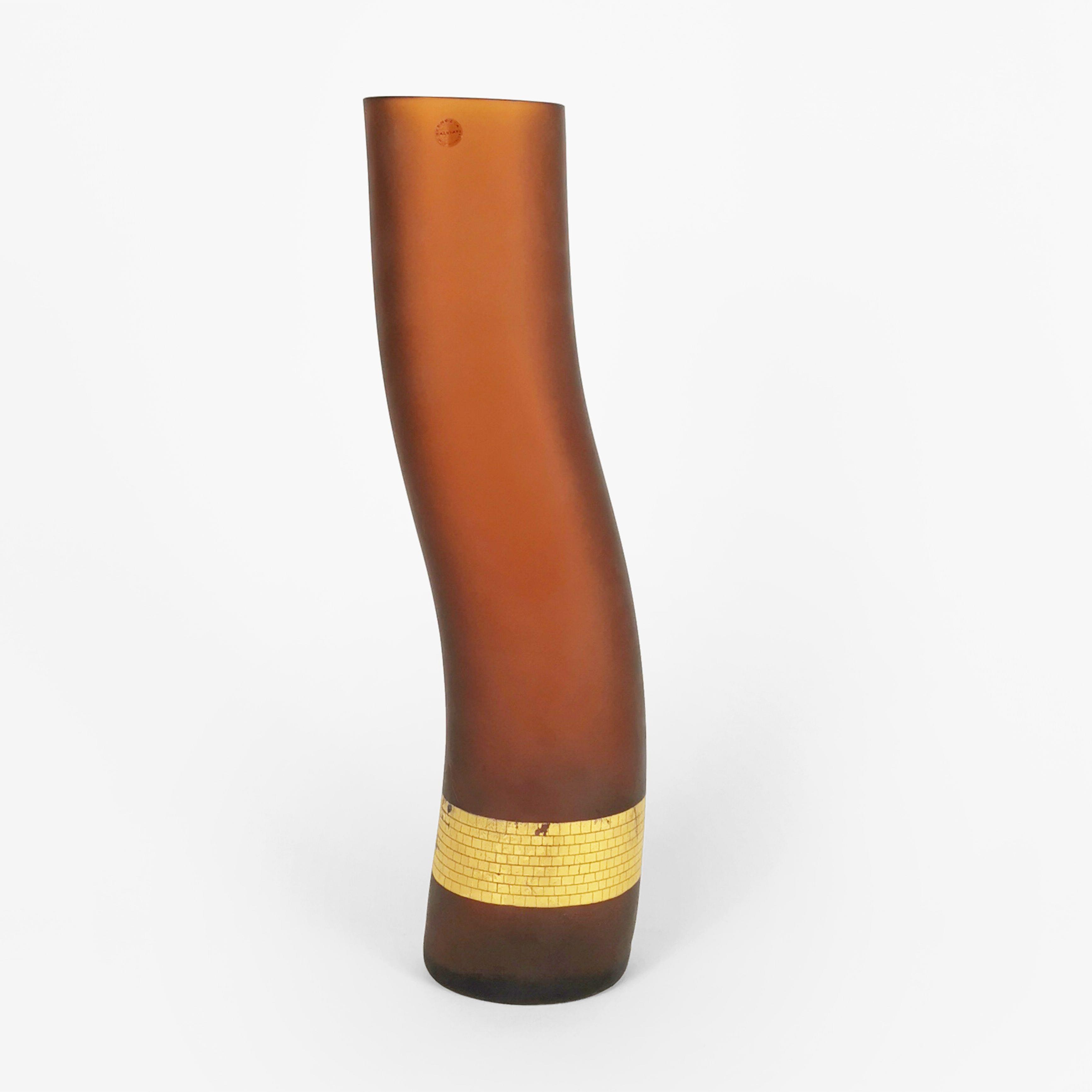 Verre orange à décor d'une bordure dorée, H 39 cm