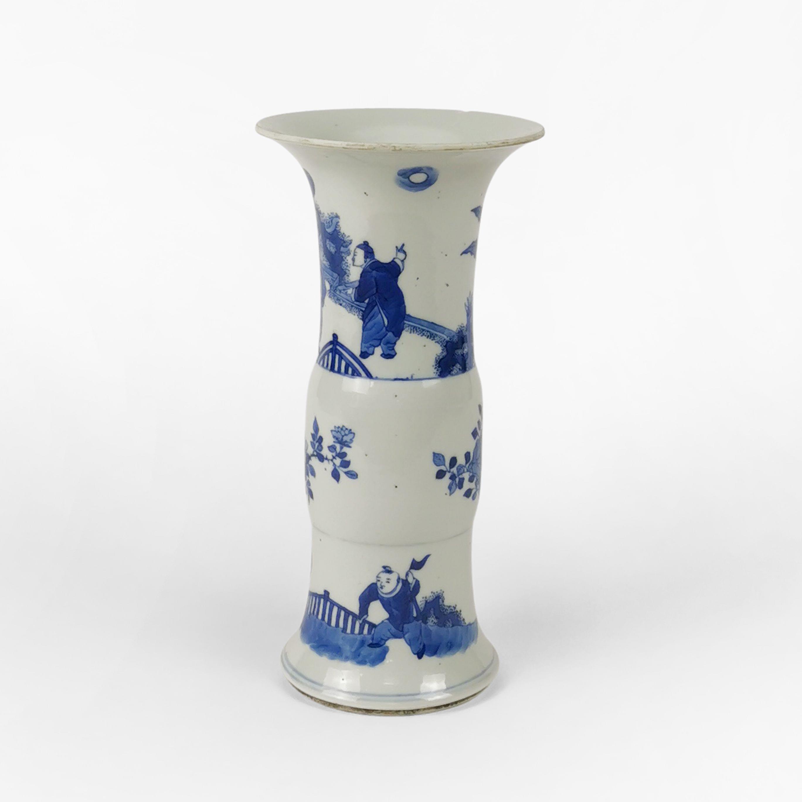 Porcelaine bleu blanc à décor d'un paysage animé, H 22 cm