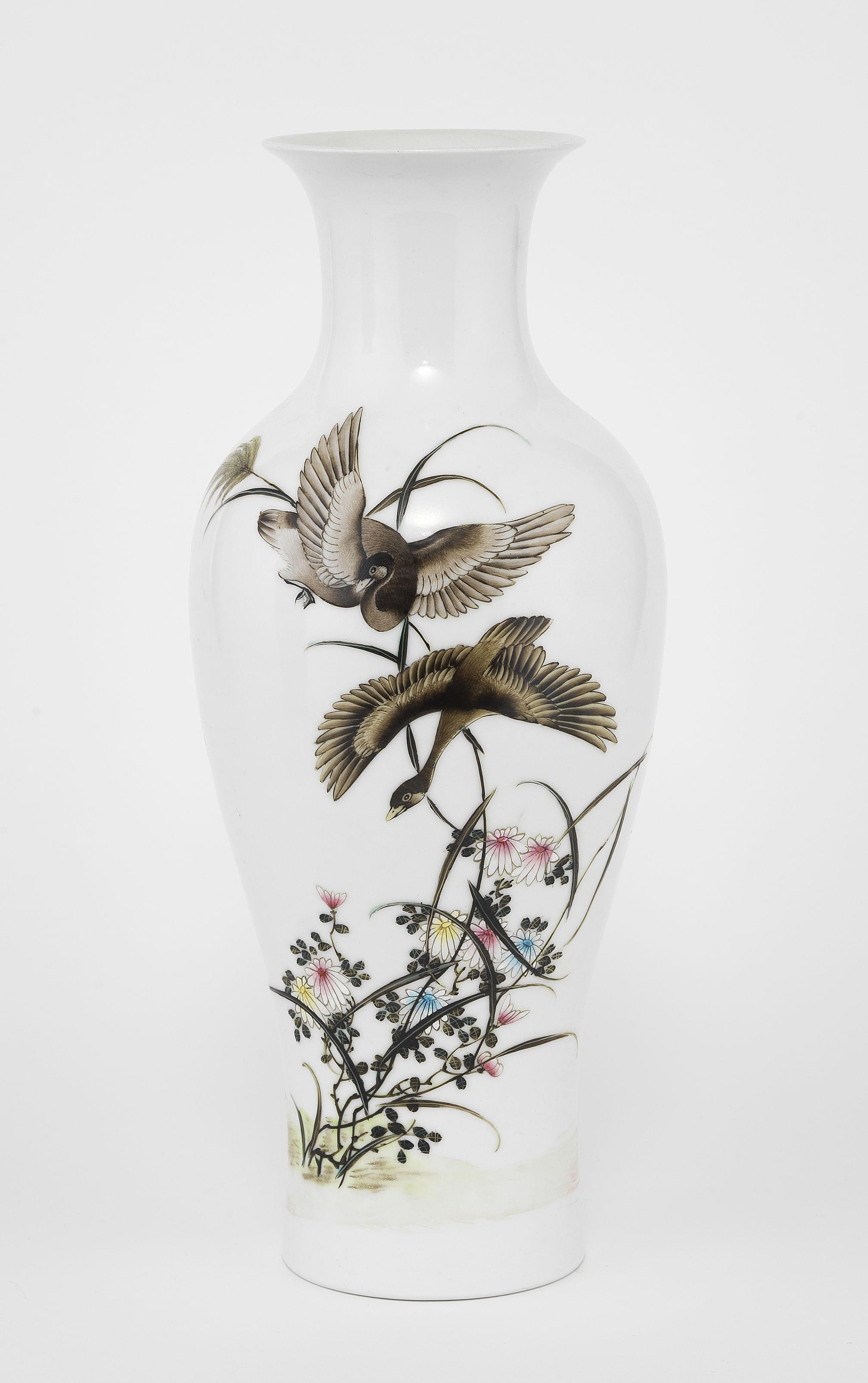 Porcelaine émaillée polychrome à décor de wisteria et roses sur...