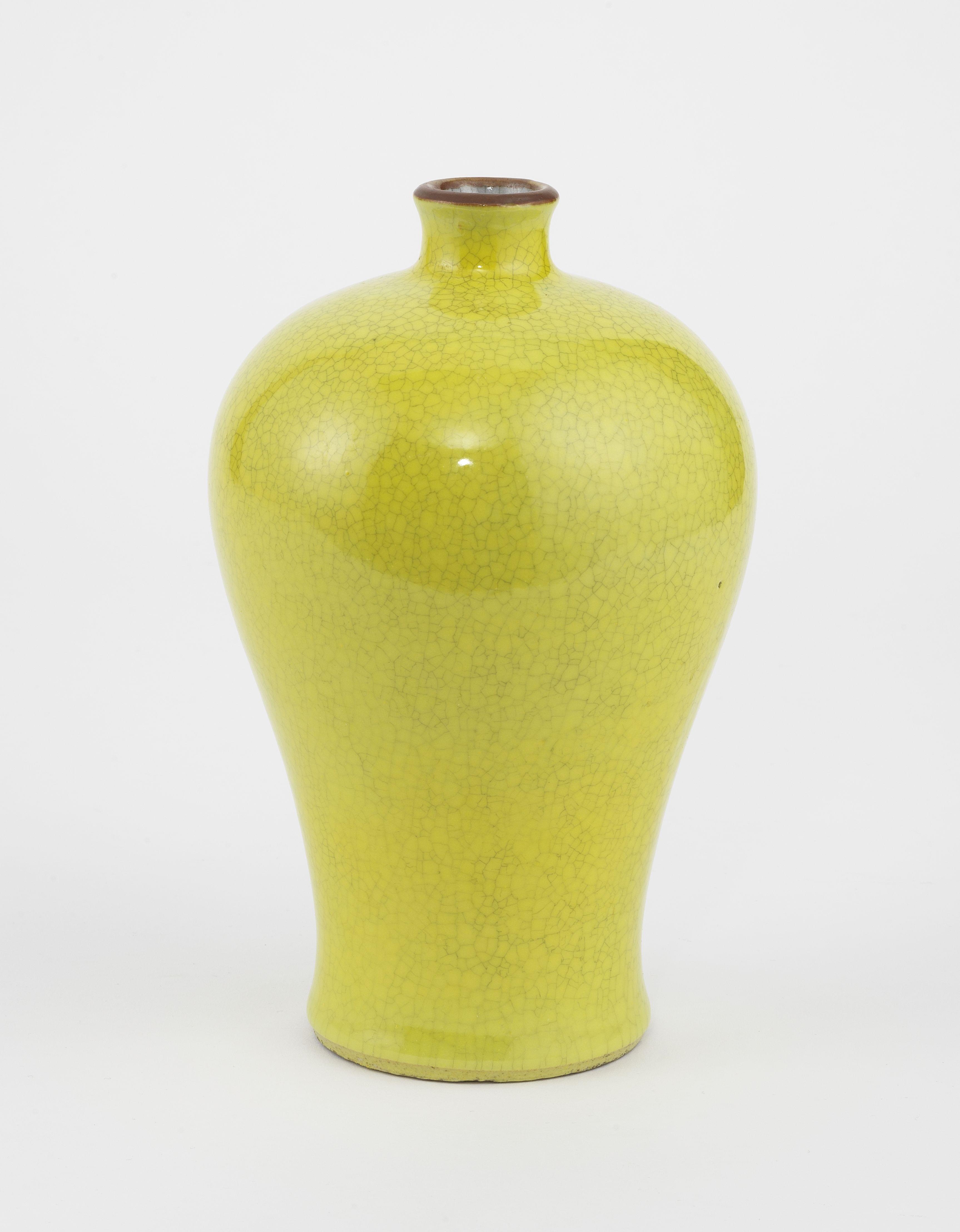 Porcelaine émaillée monochrome jaune craquelé, H 19 cm