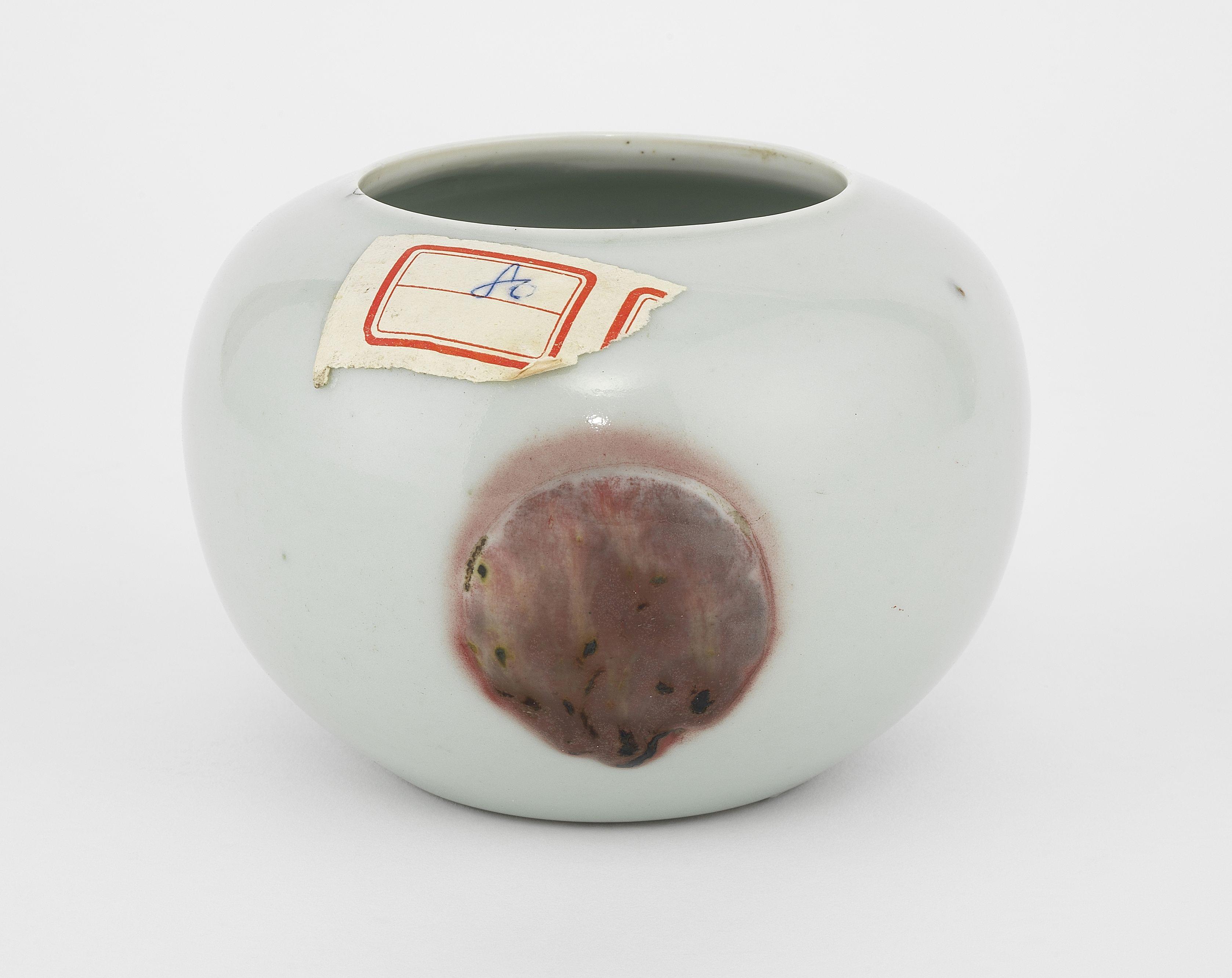 Porcelaine émaillée céladon clair à motif d'une tache rouge, D 11 cm