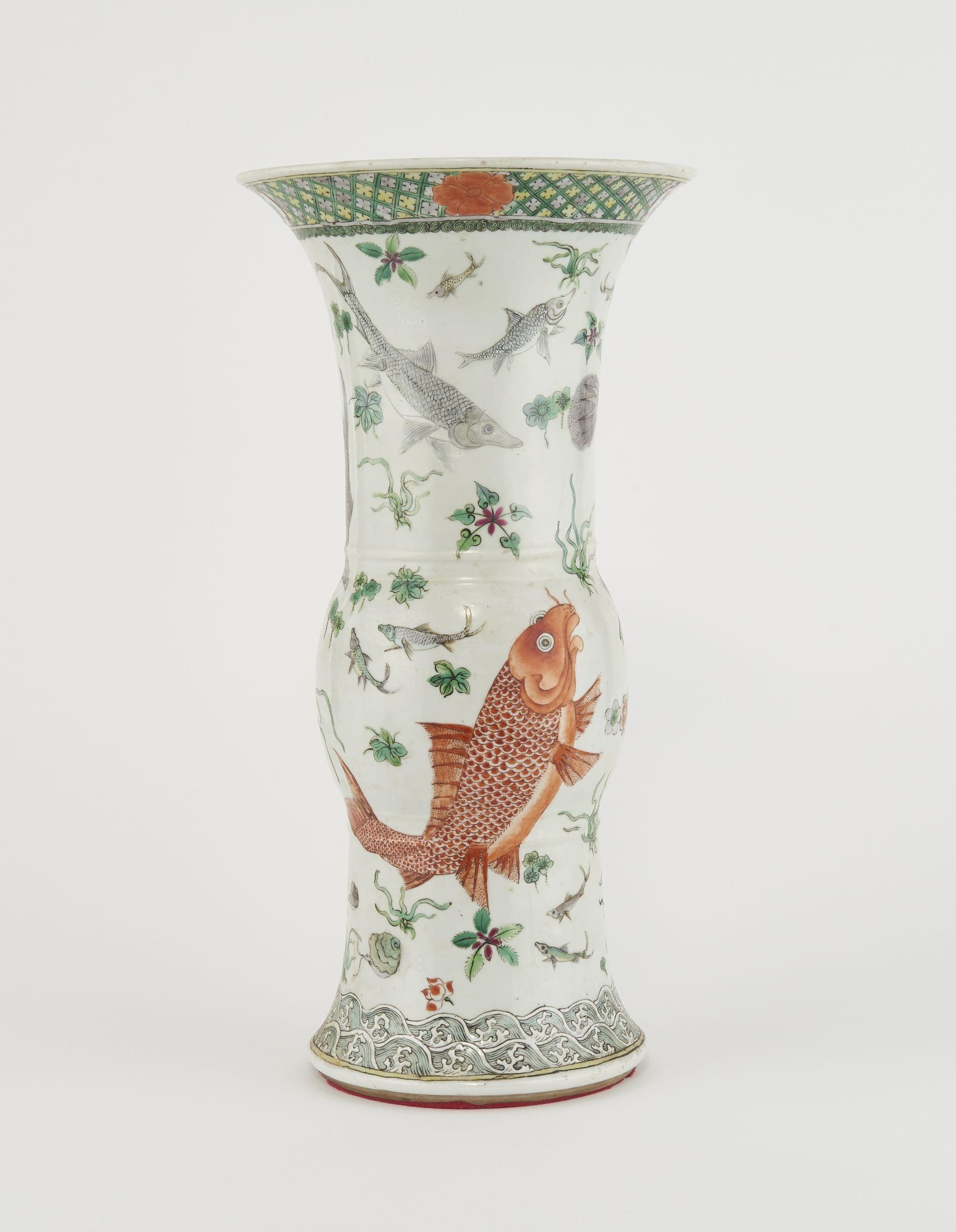 Porcelaine émaillée polychrome à motifs de poissons, H 40 cm