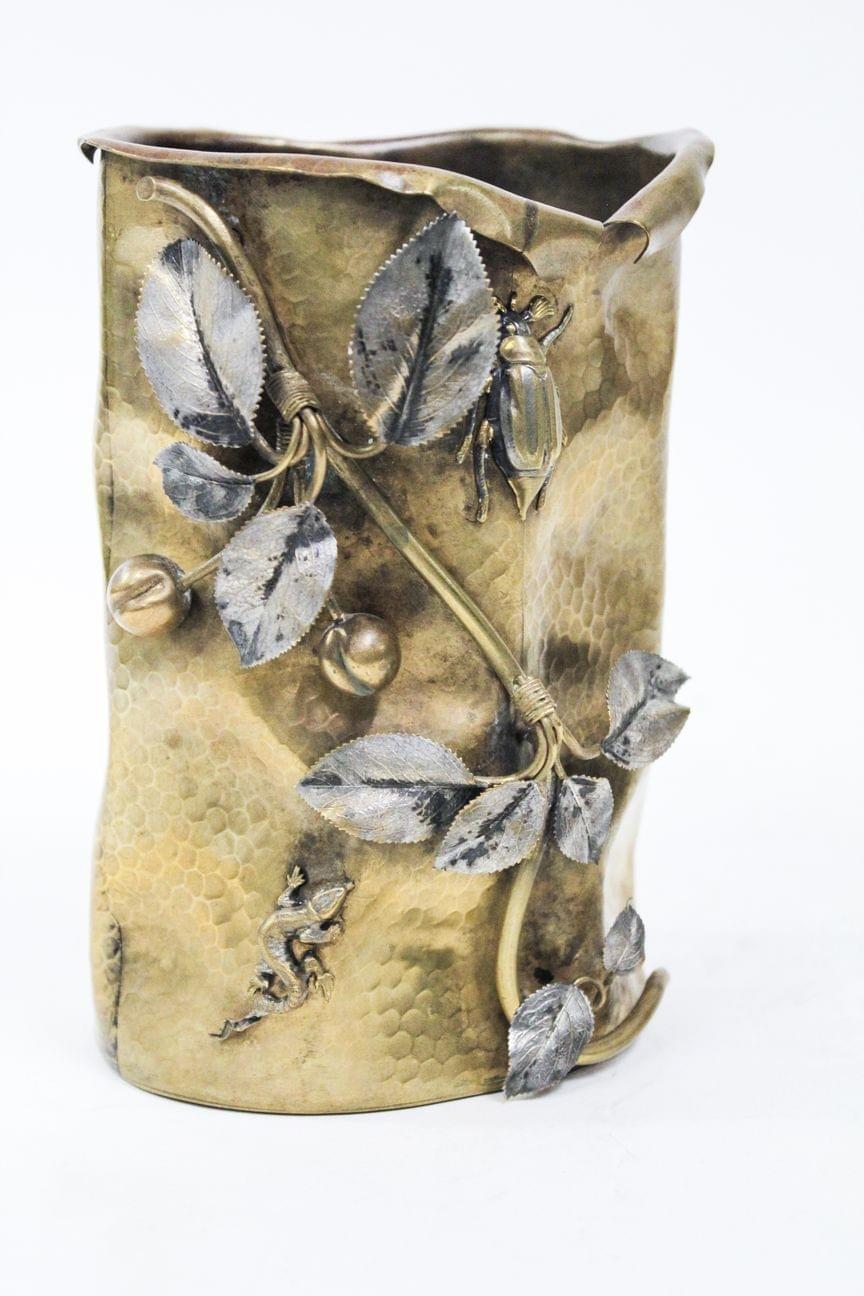 Laiton à décor de scarabé, lézards et feuillages, H 18 cm