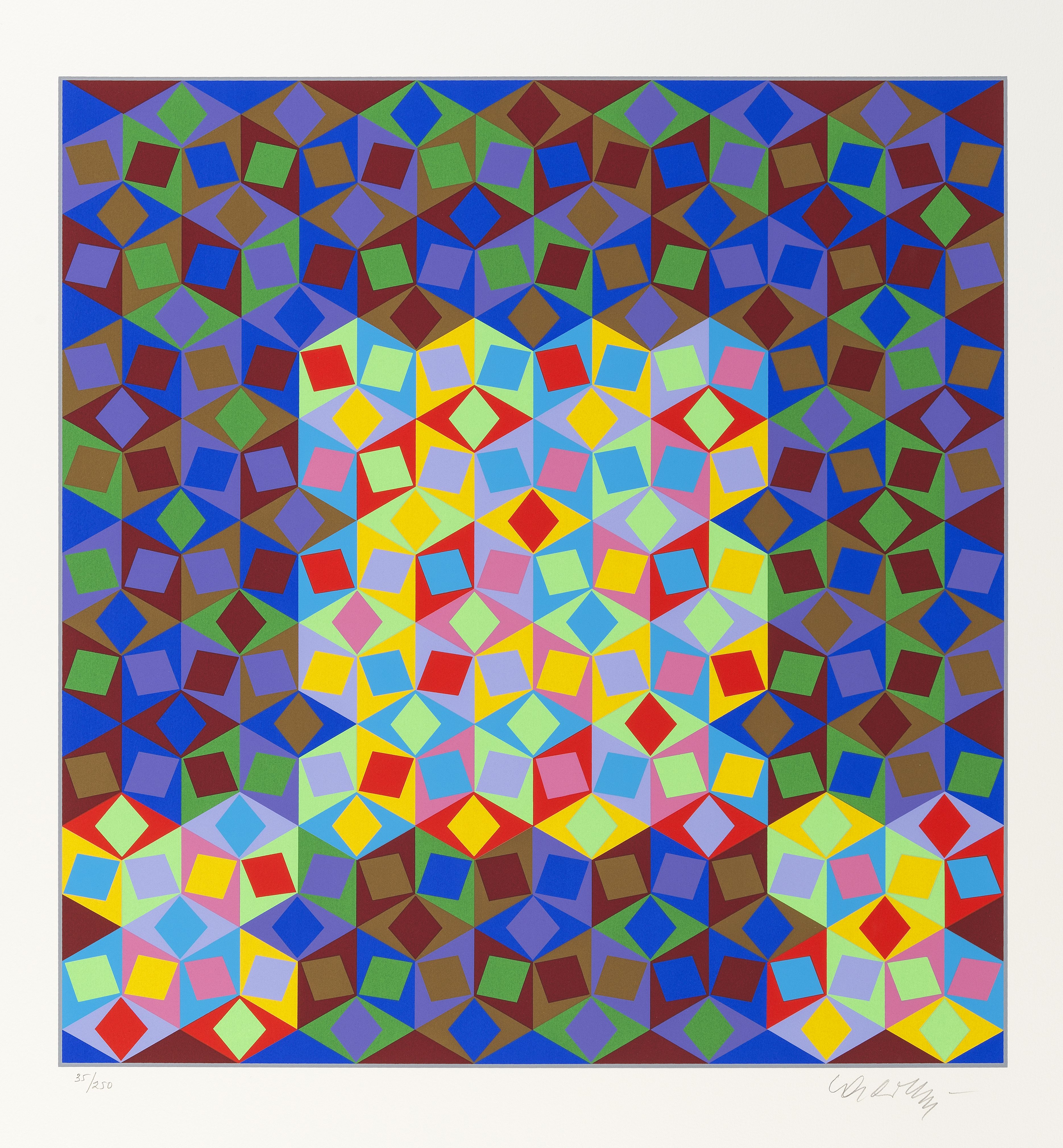 Composition géométrique verte et bleue, sérigraphie signée dans...