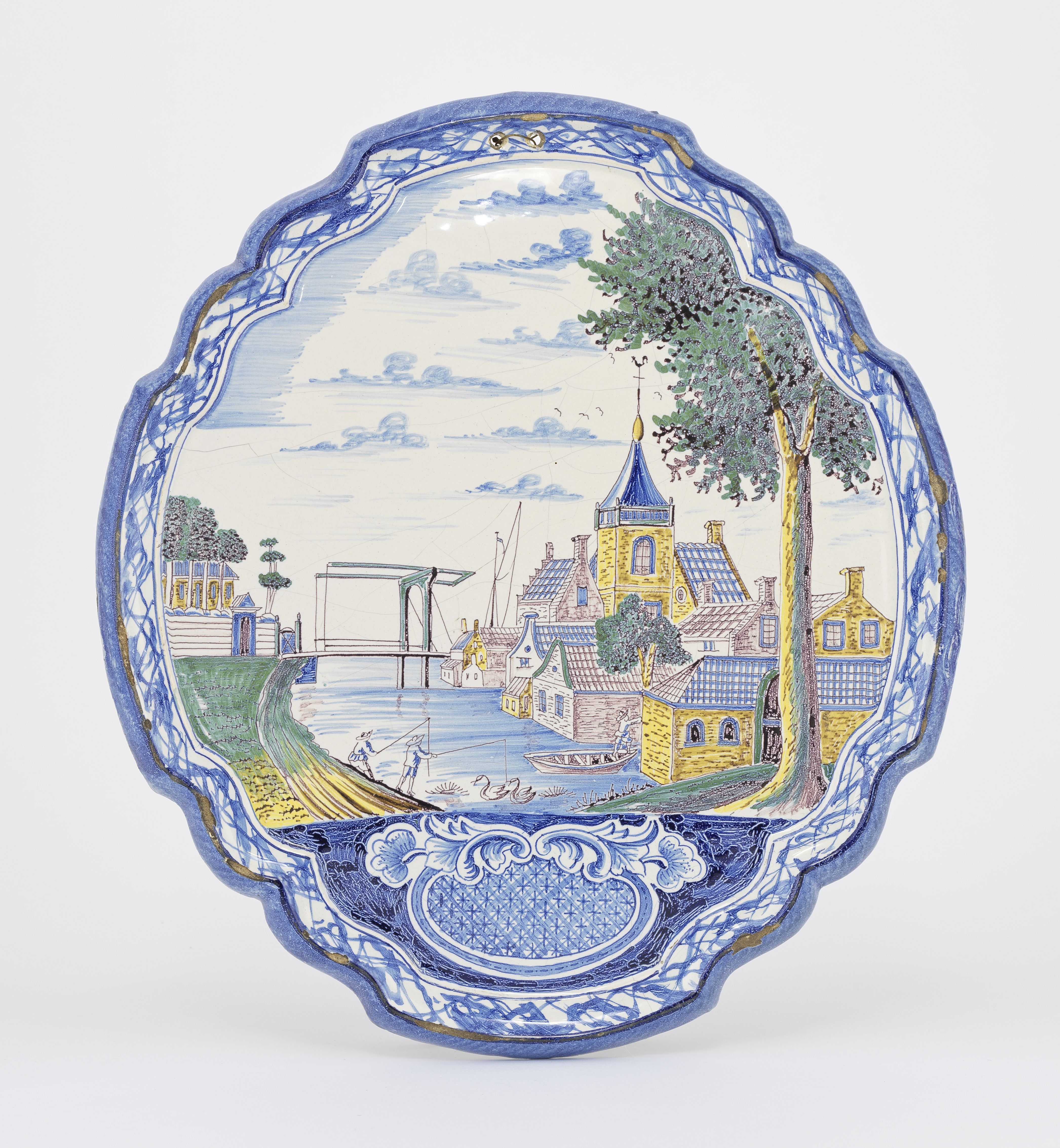 3961. Plaque murale ovale, Ville et canal, Delft, XVIIIe s