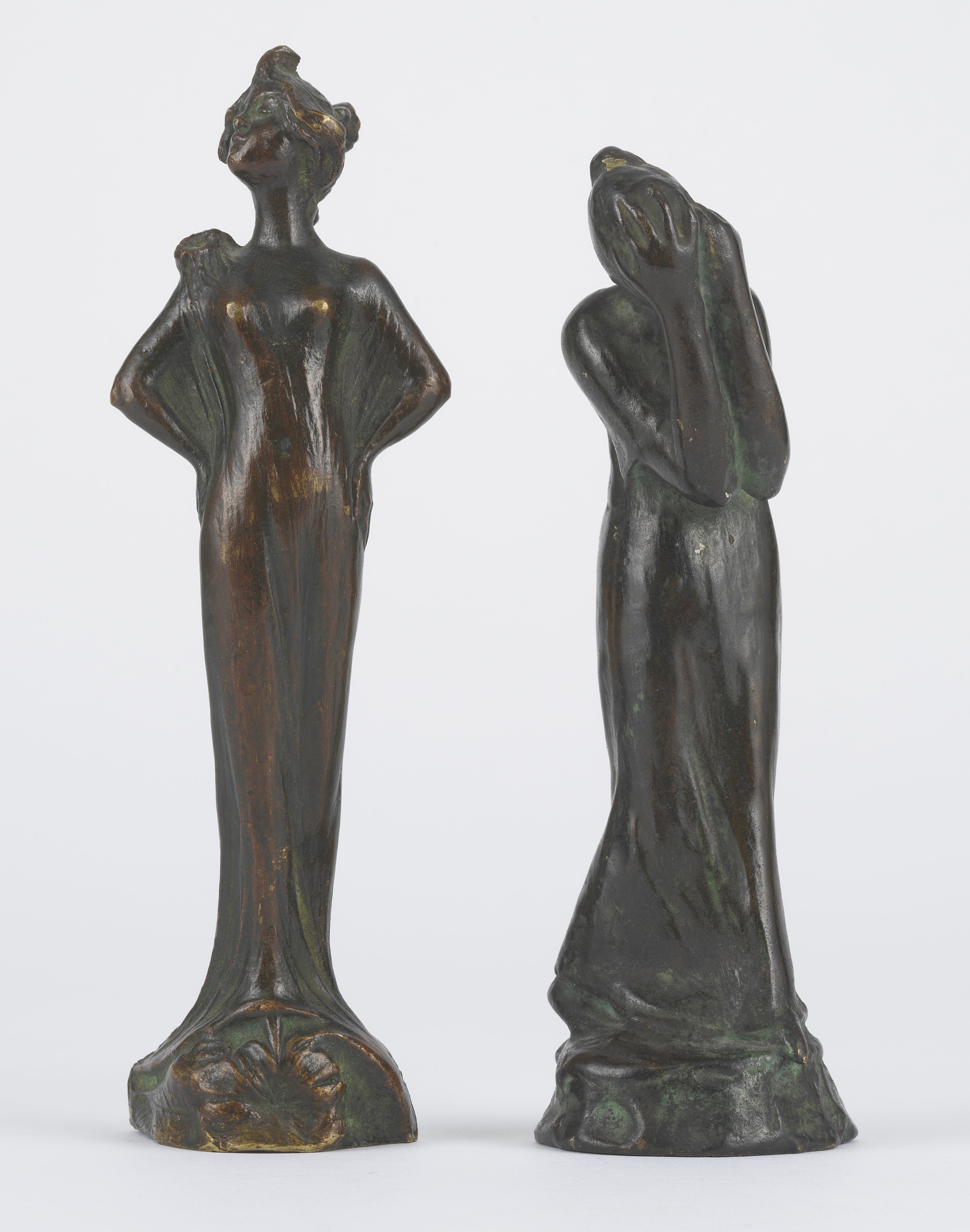 Deux statuettes de femme, bronzes, signés sur la terrasse, H 16...