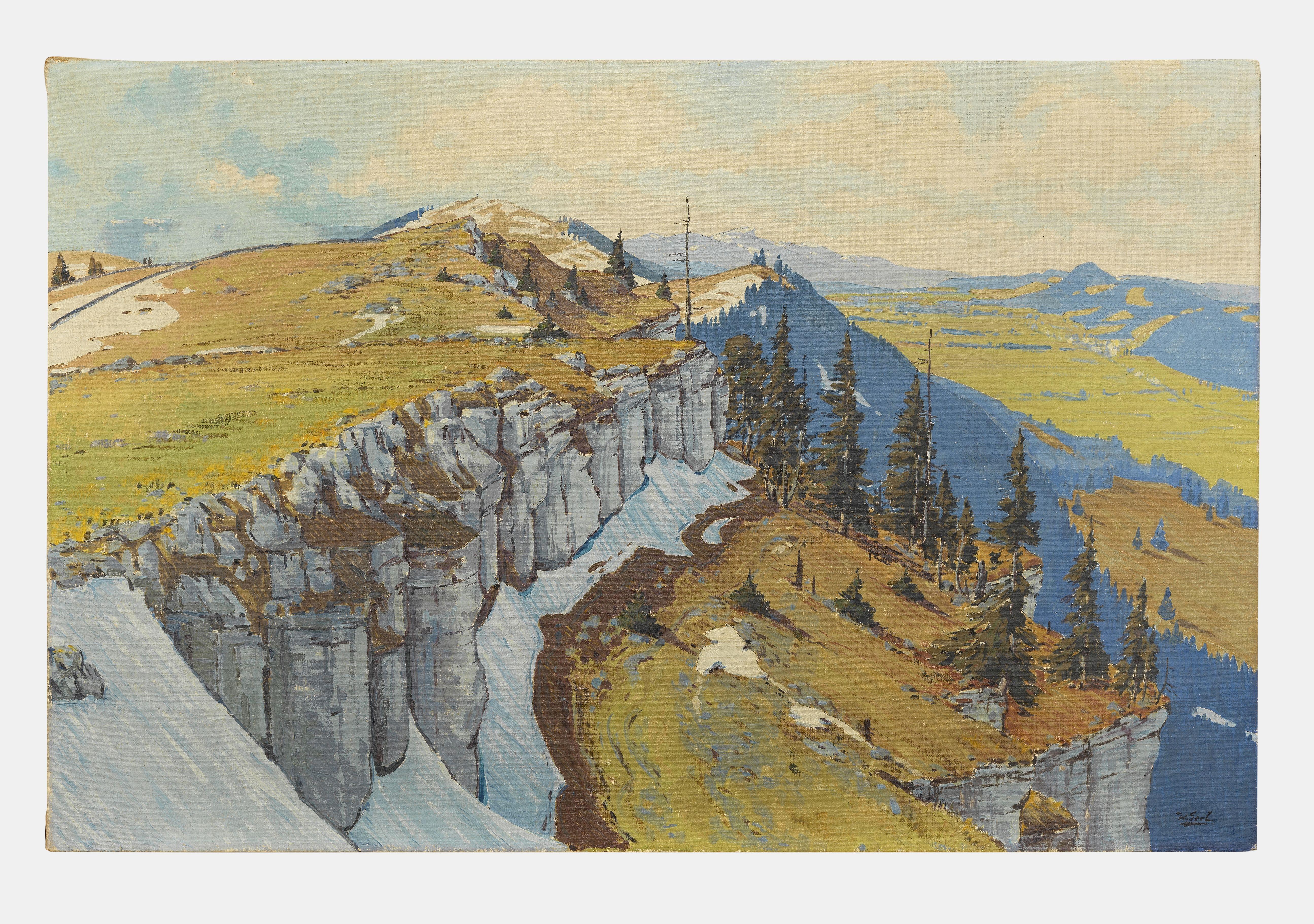 Vue du Mont Racine, huile sur toile, signée, datée au dos 1926, 65x100 cm