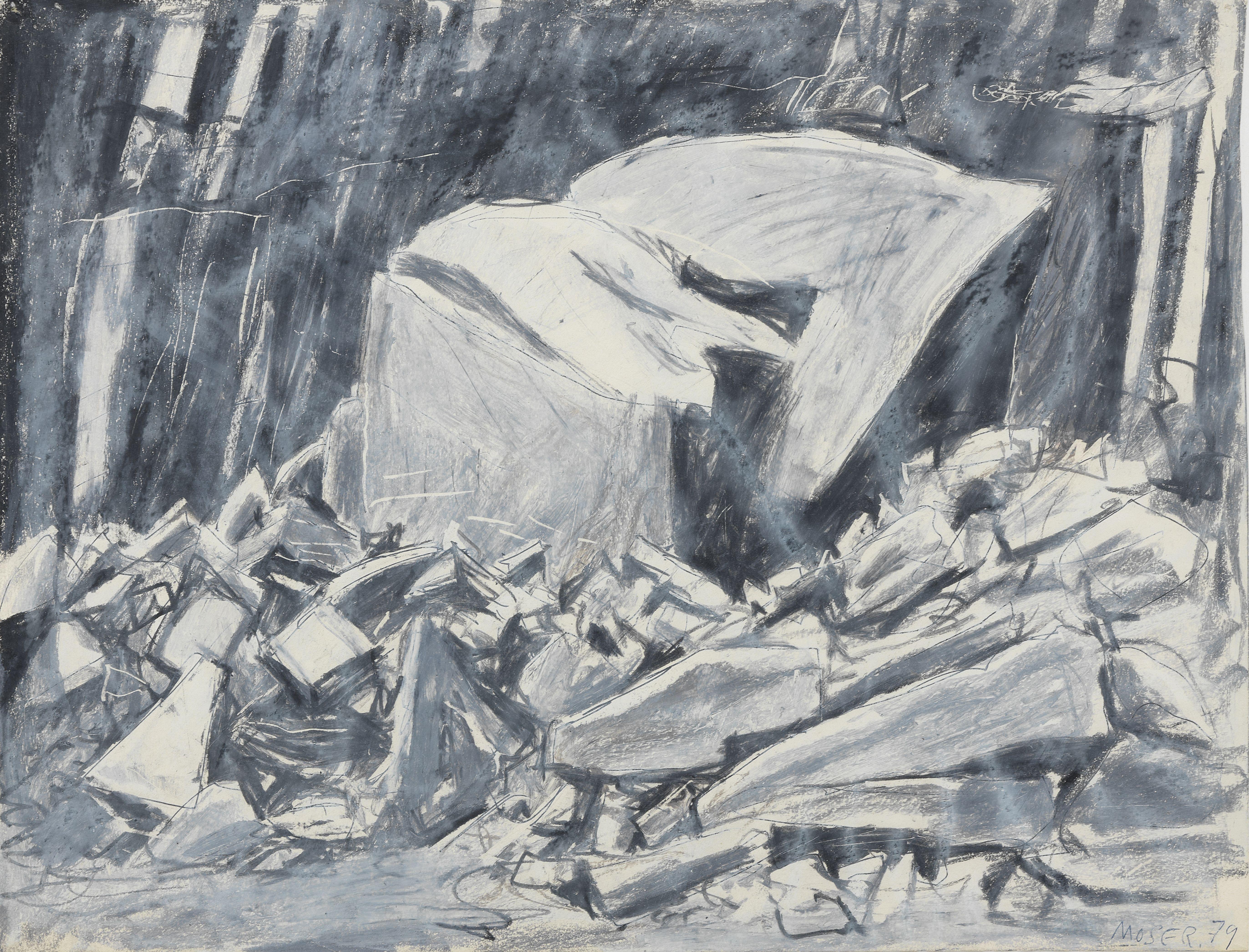 Rochers, encre et pastel sur papier, signés et datés 79, 35x45 cm