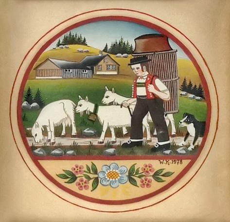 Berger et ses chèvres, gouache sur papier, monogrammée et datée 1978, D 8 cm