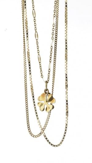 3107. Lot de trois chaînes, l'une à maille cheval retenant un pendenti...