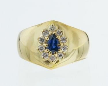 3111. Bague bandeau sertie d'un saphir taille poire entouré de diamant...
