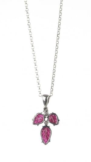 3126. Pendentif serti de trois rubis gravés à motif de feuilles rehaus...