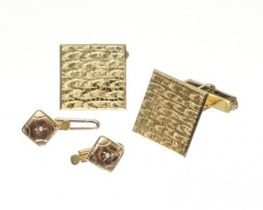 Or 750, 13 g. On joint une paire de boutons de chemise en or 585...