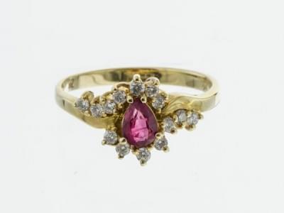 3136. Bague sertie d'un rubis taille poire entouré de diamants