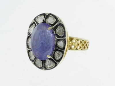 3142. Bague sertie d'une tanzanite taille cabochon entourée de diamant...